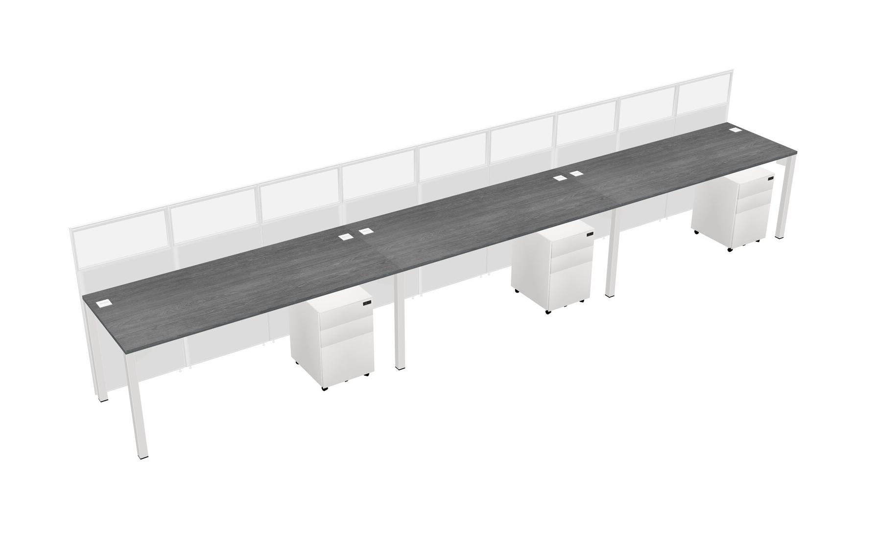 Grey Shared Rectangular Office Cubicle Panel System With Mobile Drawers For 3 Persons