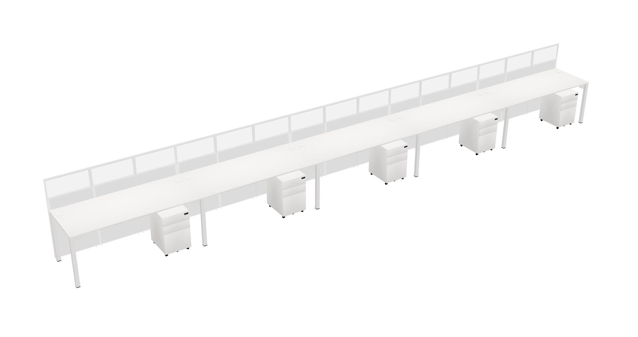 White Shared Rectangular Office Cubicle Panel System With Mobile Drawers For 5 Persons
