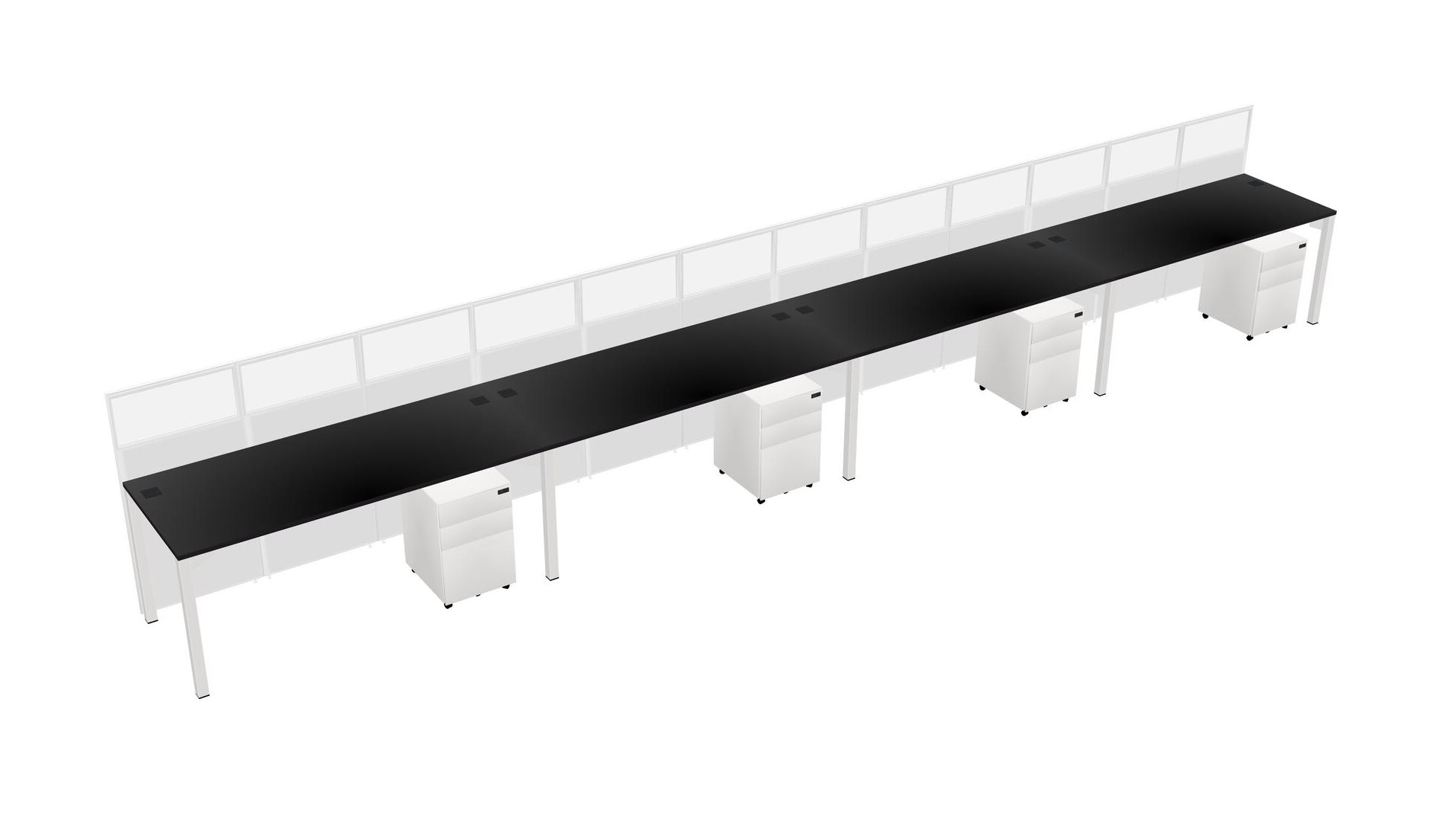 Black Shared Rectangular Office Cubicle Panel System With Mobile Drawers For 4 Persons