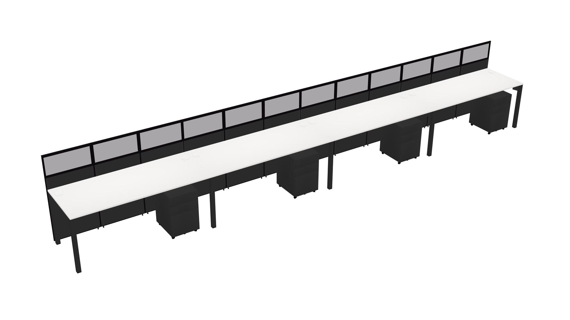 White Shared Rectangular Office Cubicle Panel System With Mobile Drawers For 4 Persons