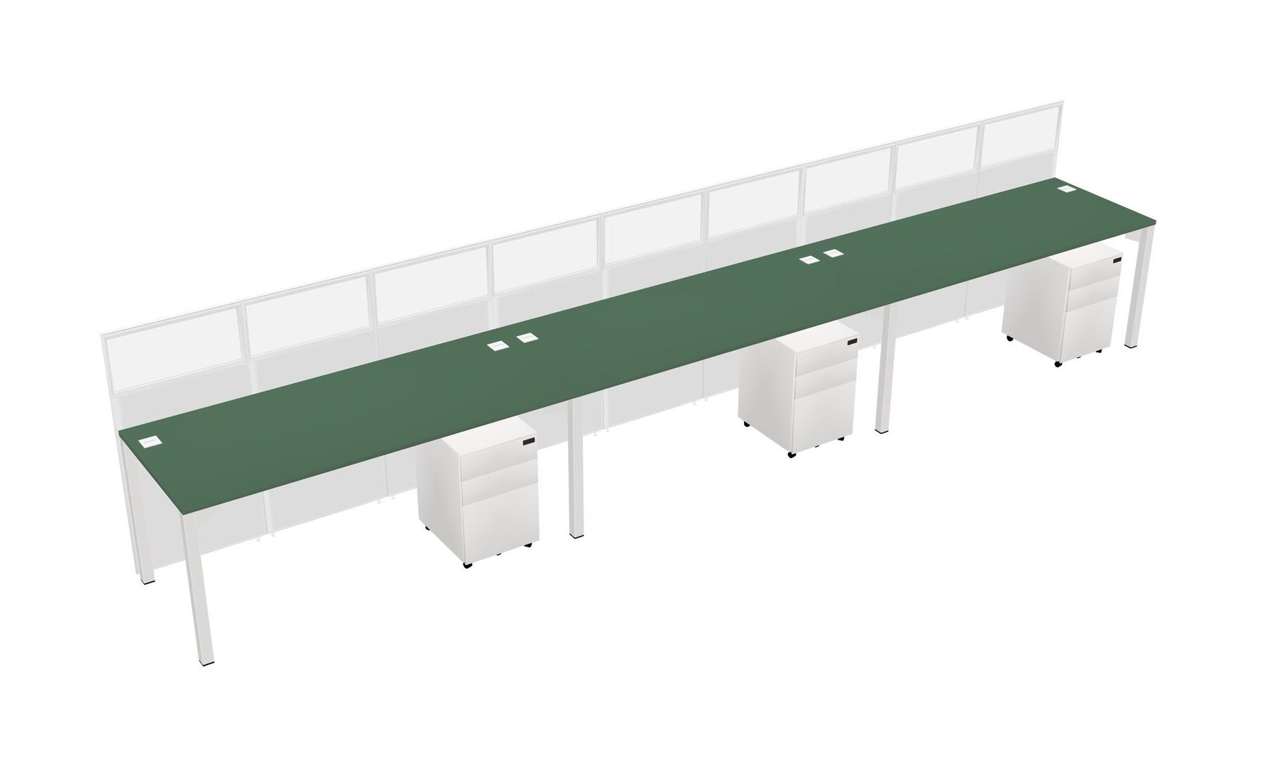 Green Shared Rectangular Office Cubicle Panel System With Mobile Drawers For 3 Persons