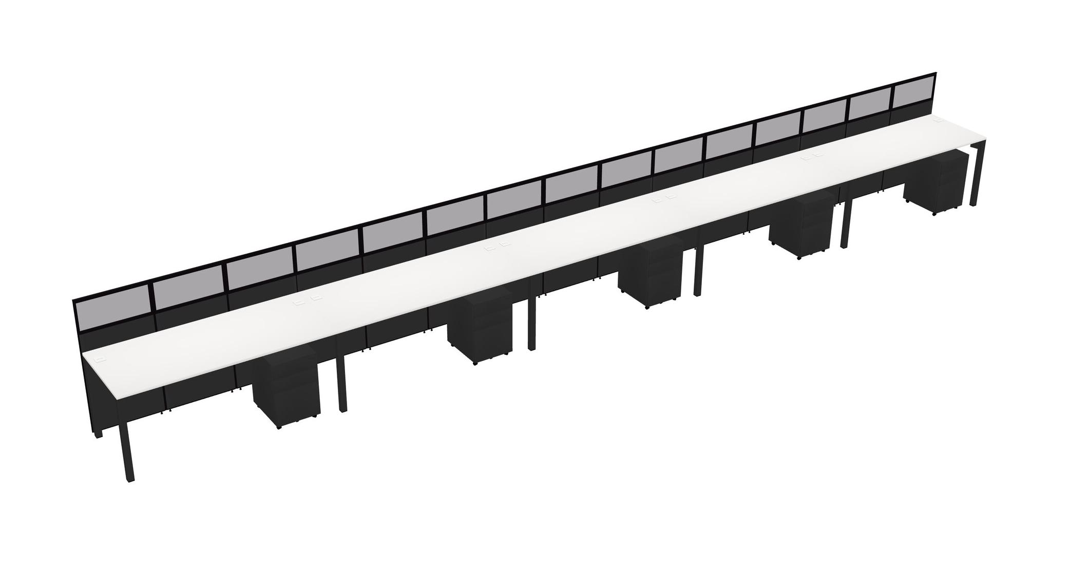 White Shared Rectangular Office Cubicle Panel System With Mobile Drawers For 5 Persons