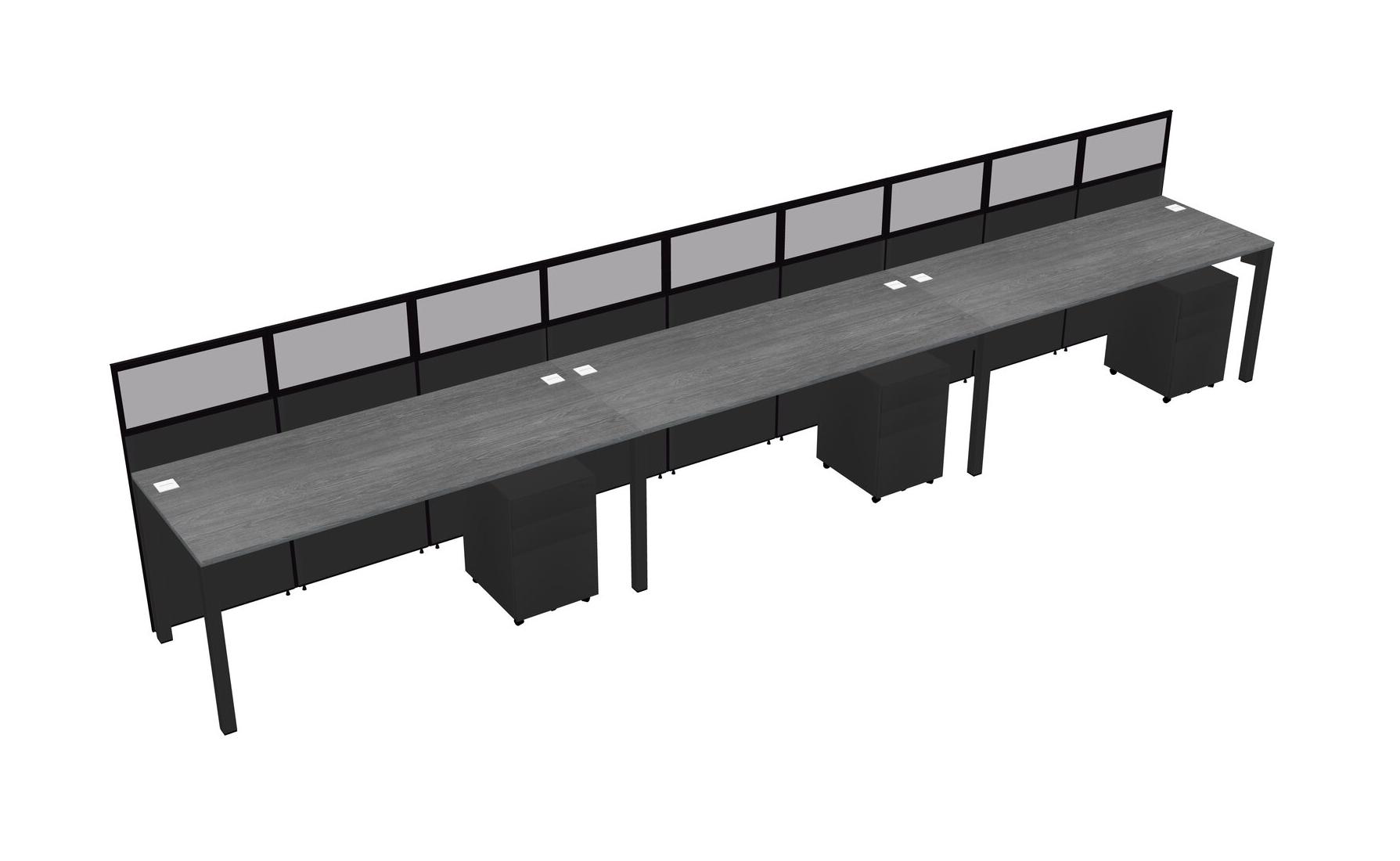 Grey Shared Rectangular Office Cubicle Panel System With Mobile Drawers For 3 Persons
