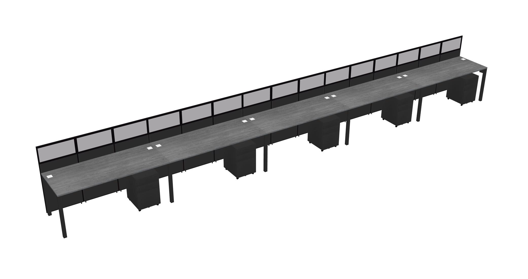 Grey Shared Rectangular Office Cubicle Panel System With Mobile Drawers For 5 Persons