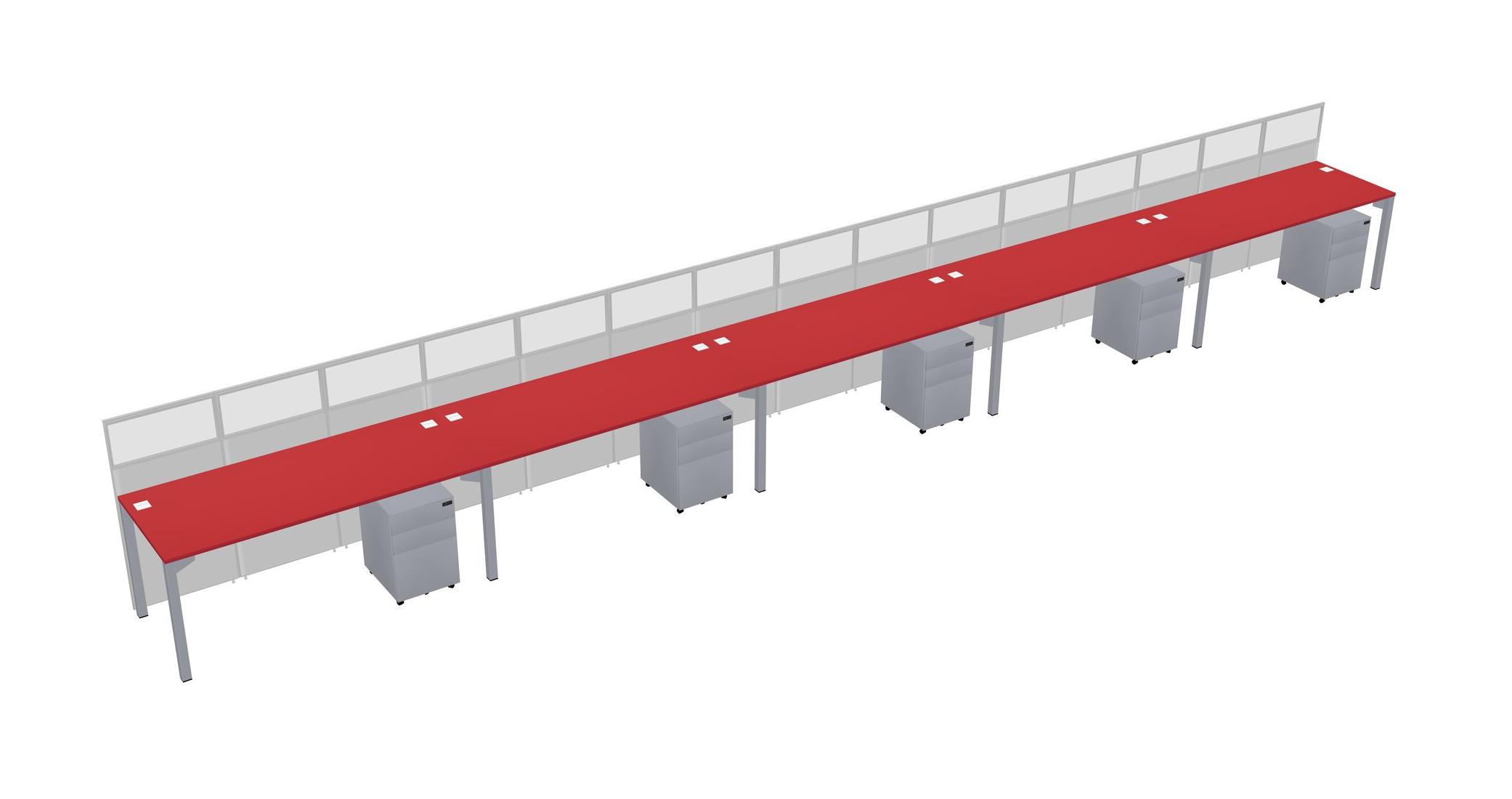 Prism Red Shared Rectangular Office Cubicle Panel System With Mobile Drawers For 5 Persons