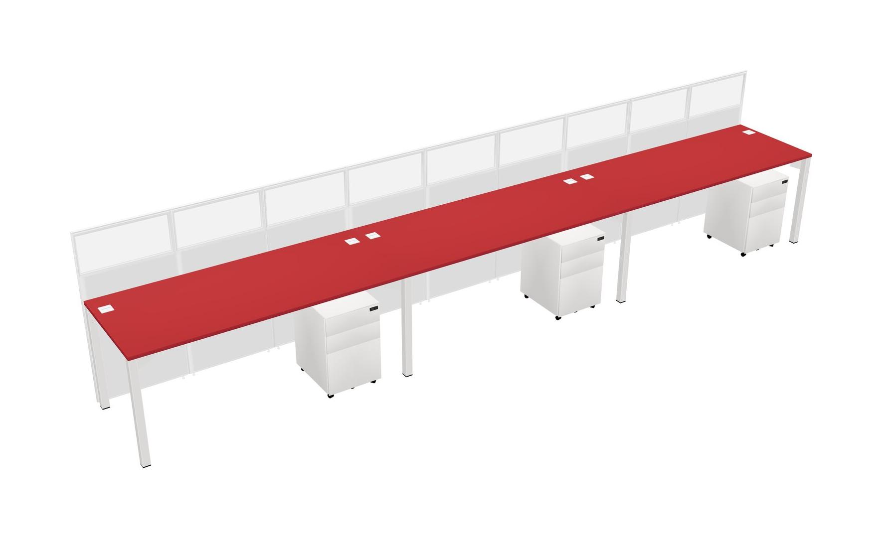 Prism Red Shared Rectangular Office Cubicle Panel System With Mobile Drawers For 3 Persons