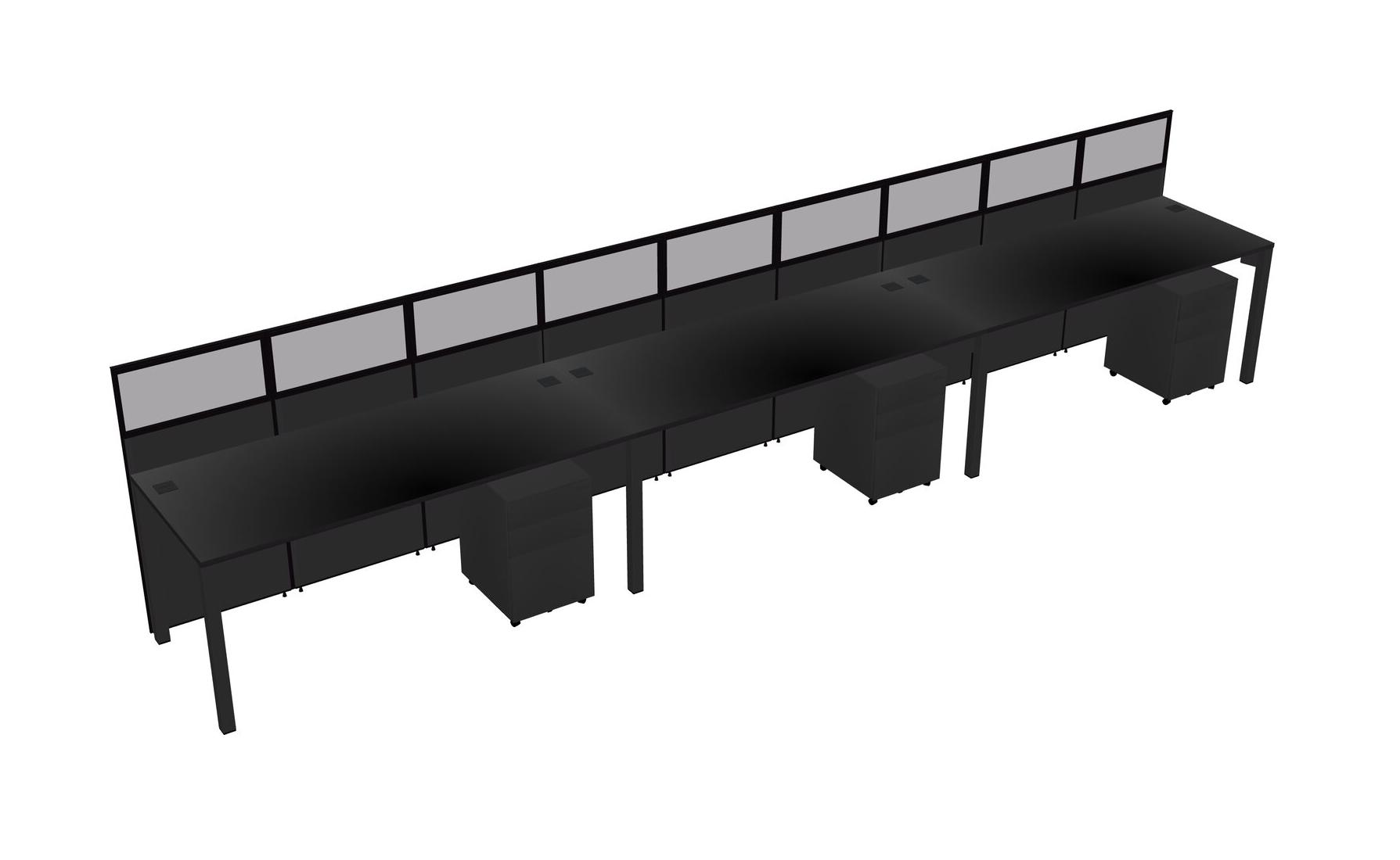Black Shared Rectangular Office Cubicle Panel System With Mobile Drawers For 3 Persons