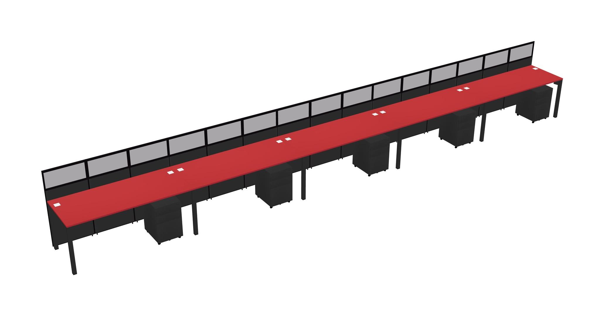 Prism Red Shared Rectangular Office Cubicle Panel System With Mobile Drawers For 5 Persons