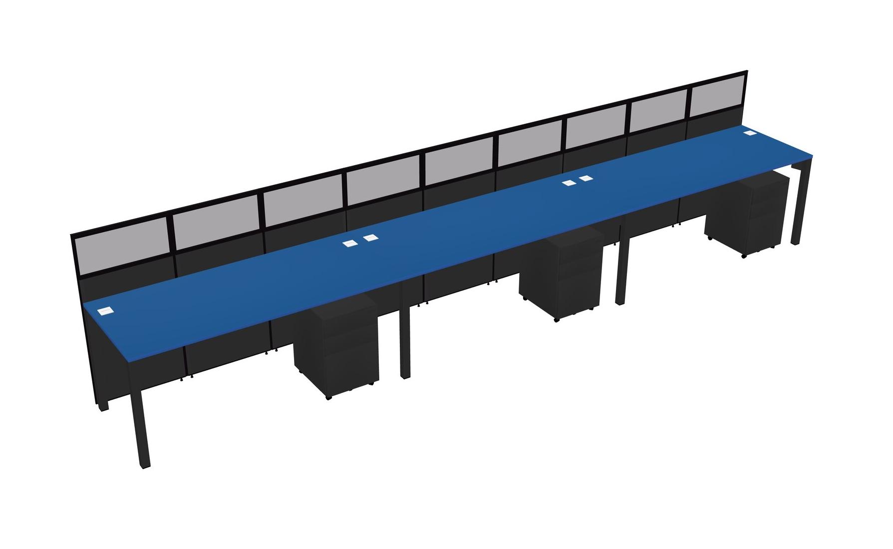 Prism Blue Shared Rectangular Office Cubicle Panel System With Mobile Drawers For 3 Persons