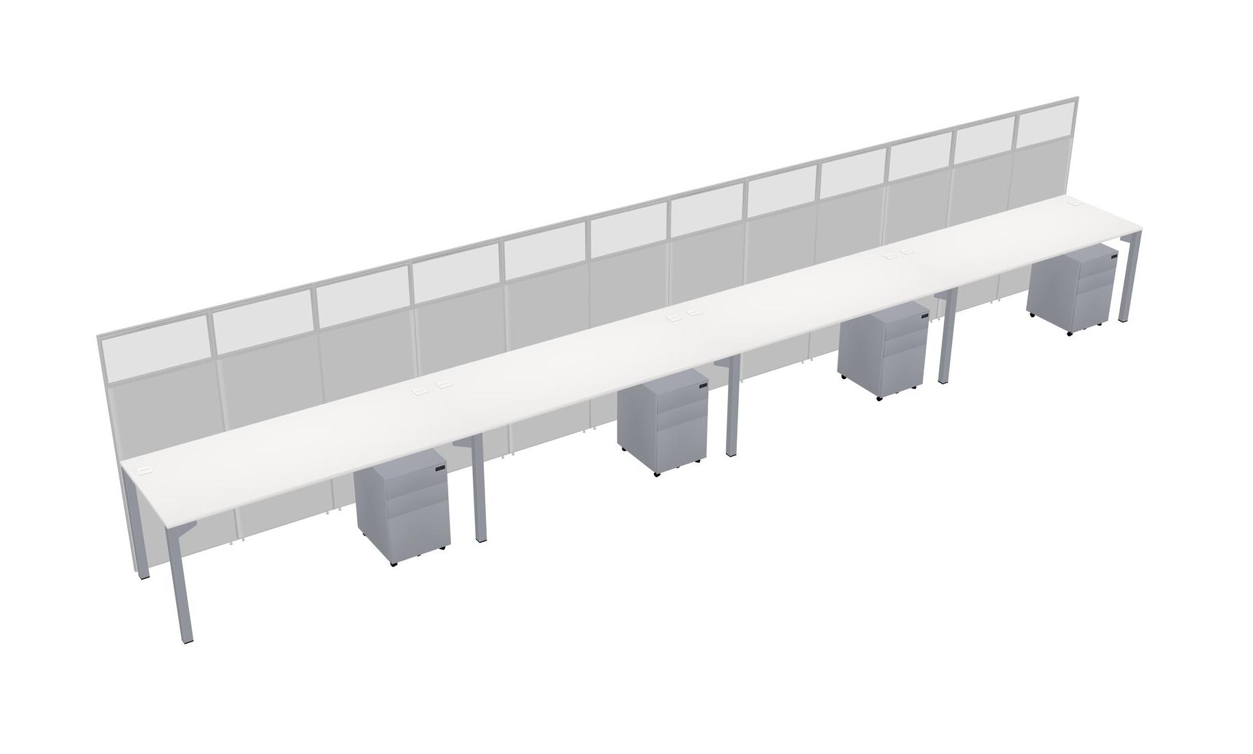 White Shared Rectangular Office Cubicle Panel System With Mobile Drawers For 4 Persons