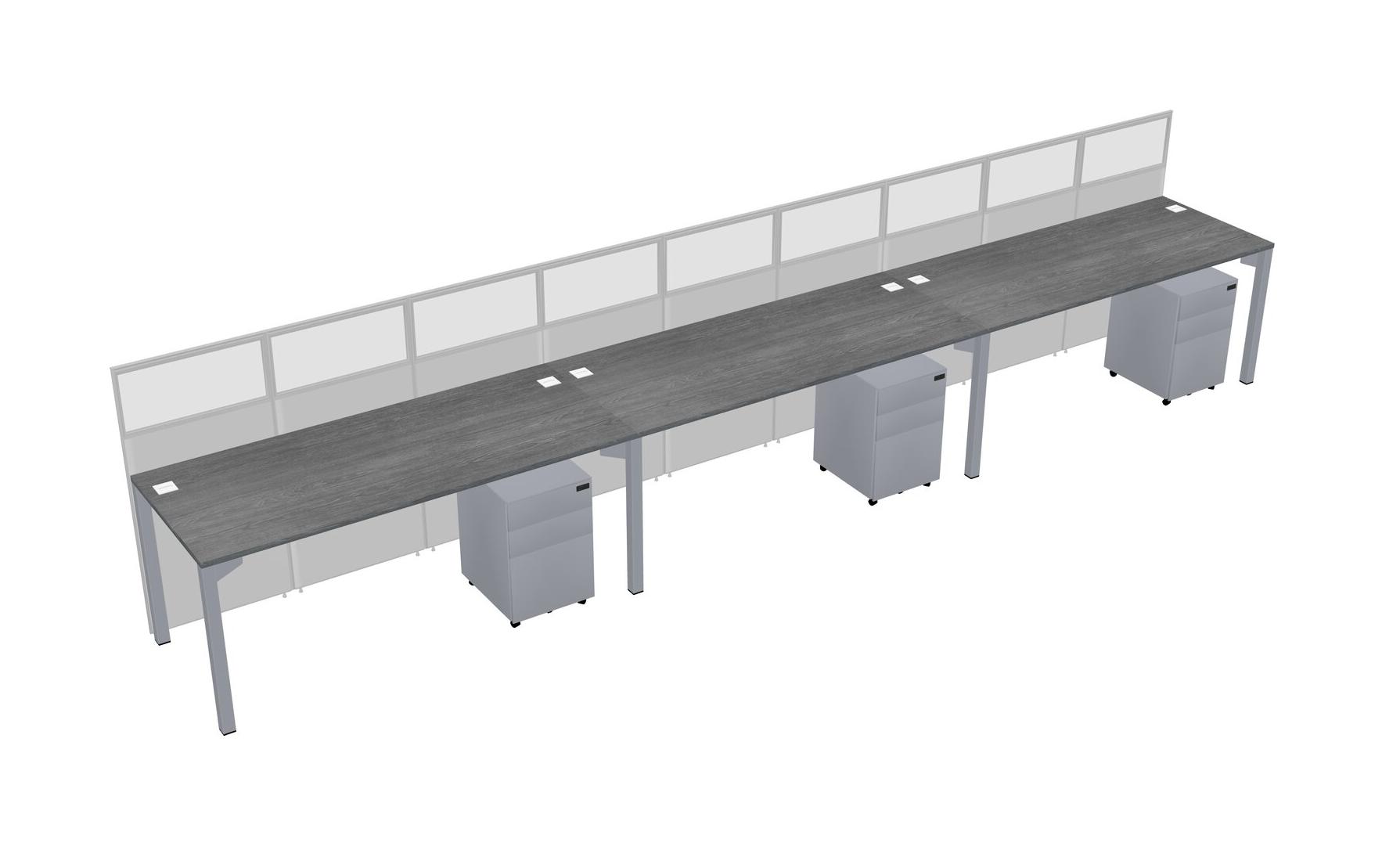 Grey Shared Rectangular Office Cubicle Panel System With Mobile Drawers For 3 Persons