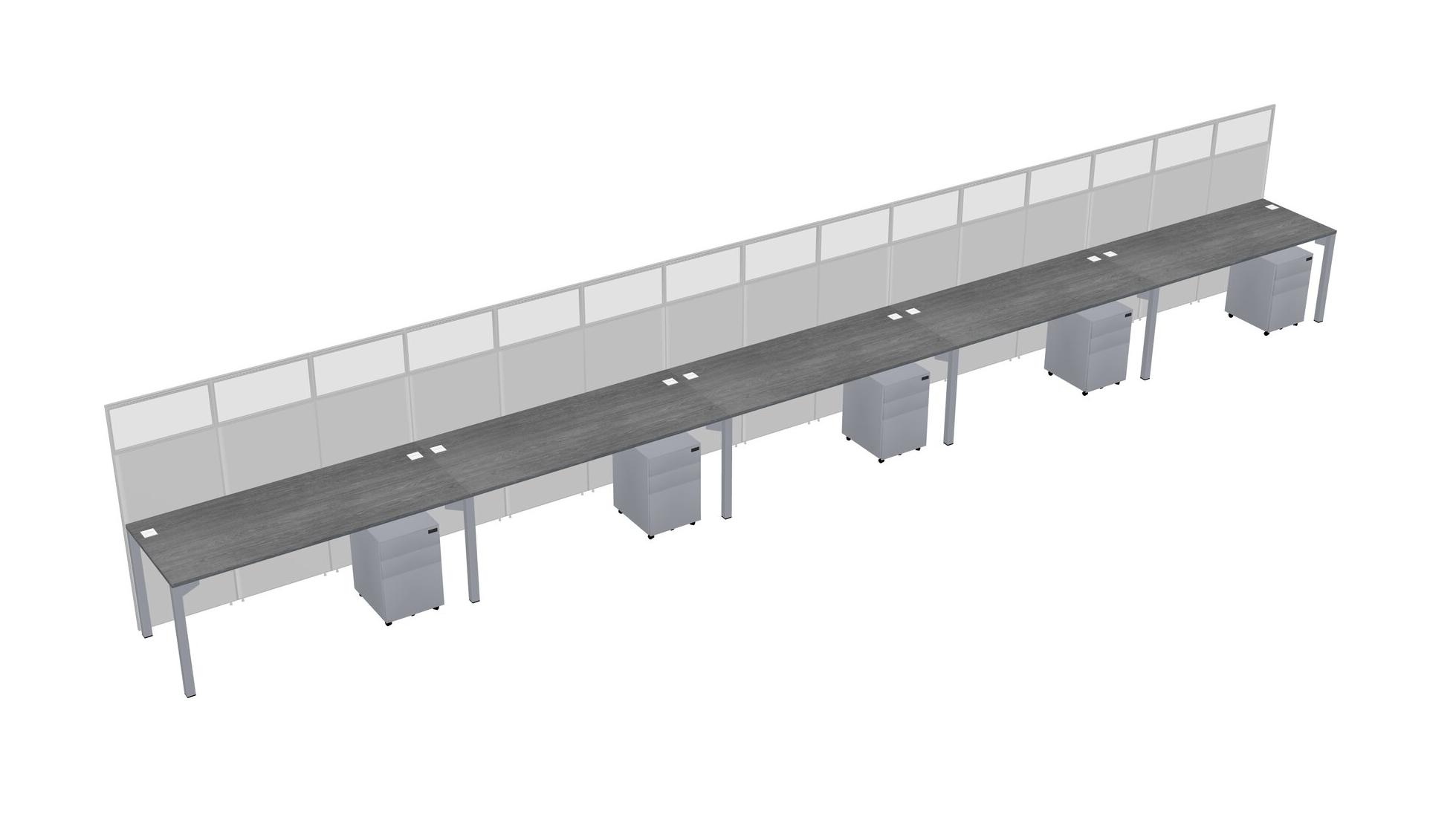 Grey Shared Rectangular Office Cubicle Panel System With Mobile Drawers For 5 Persons
