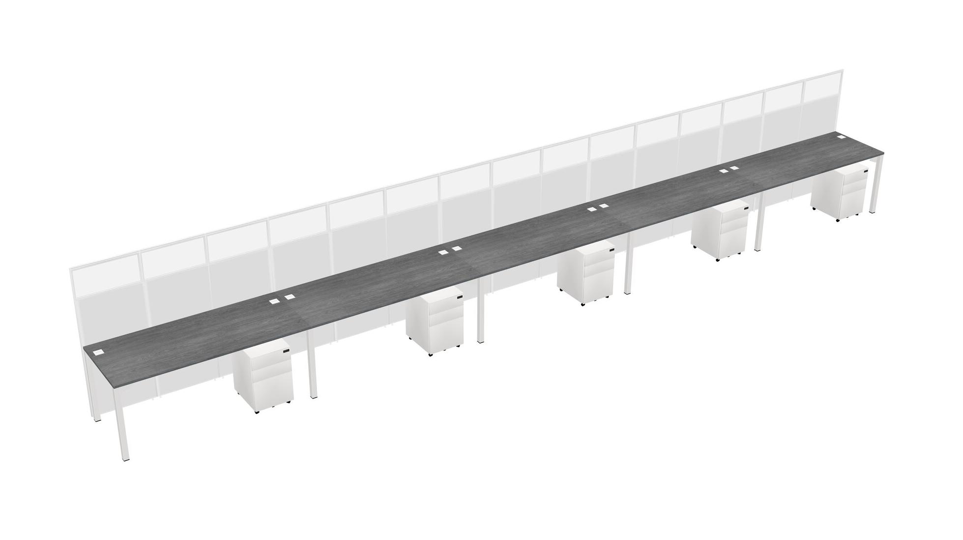 Grey Shared Rectangular Office Cubicle Panel System With Mobile Drawers For 5 Persons