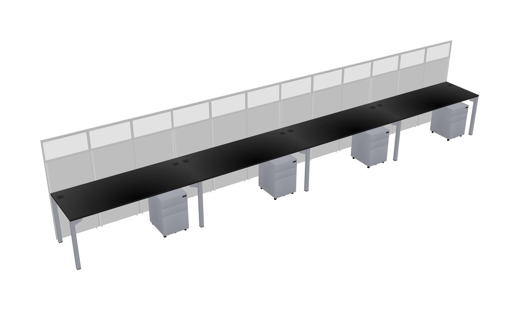 Black Shared Rectangular Office Cubicle Panel System With Mobile Drawers For 4 Persons