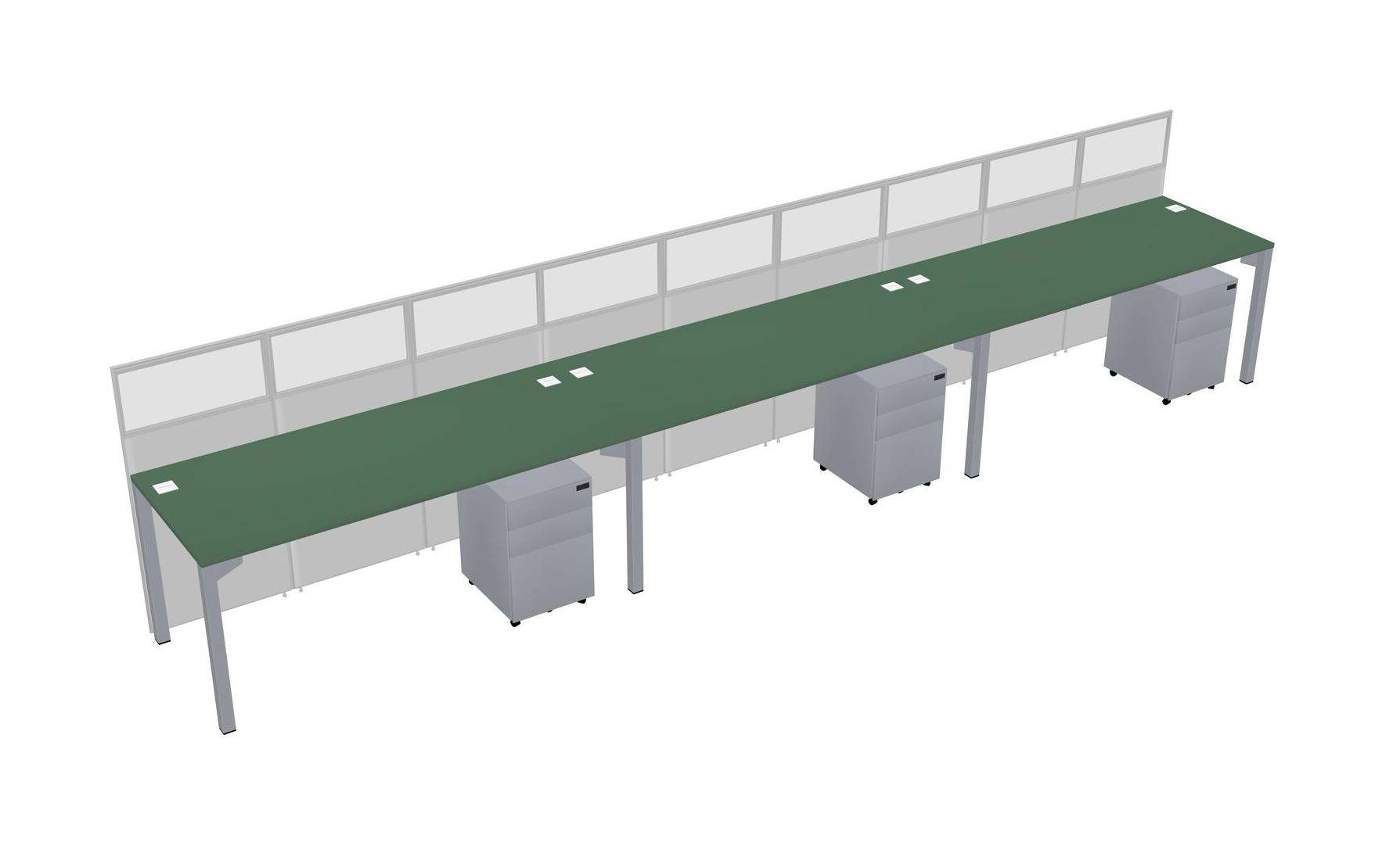 Green Shared Rectangular Office Cubicle Panel System With Mobile Drawers For 3 Persons