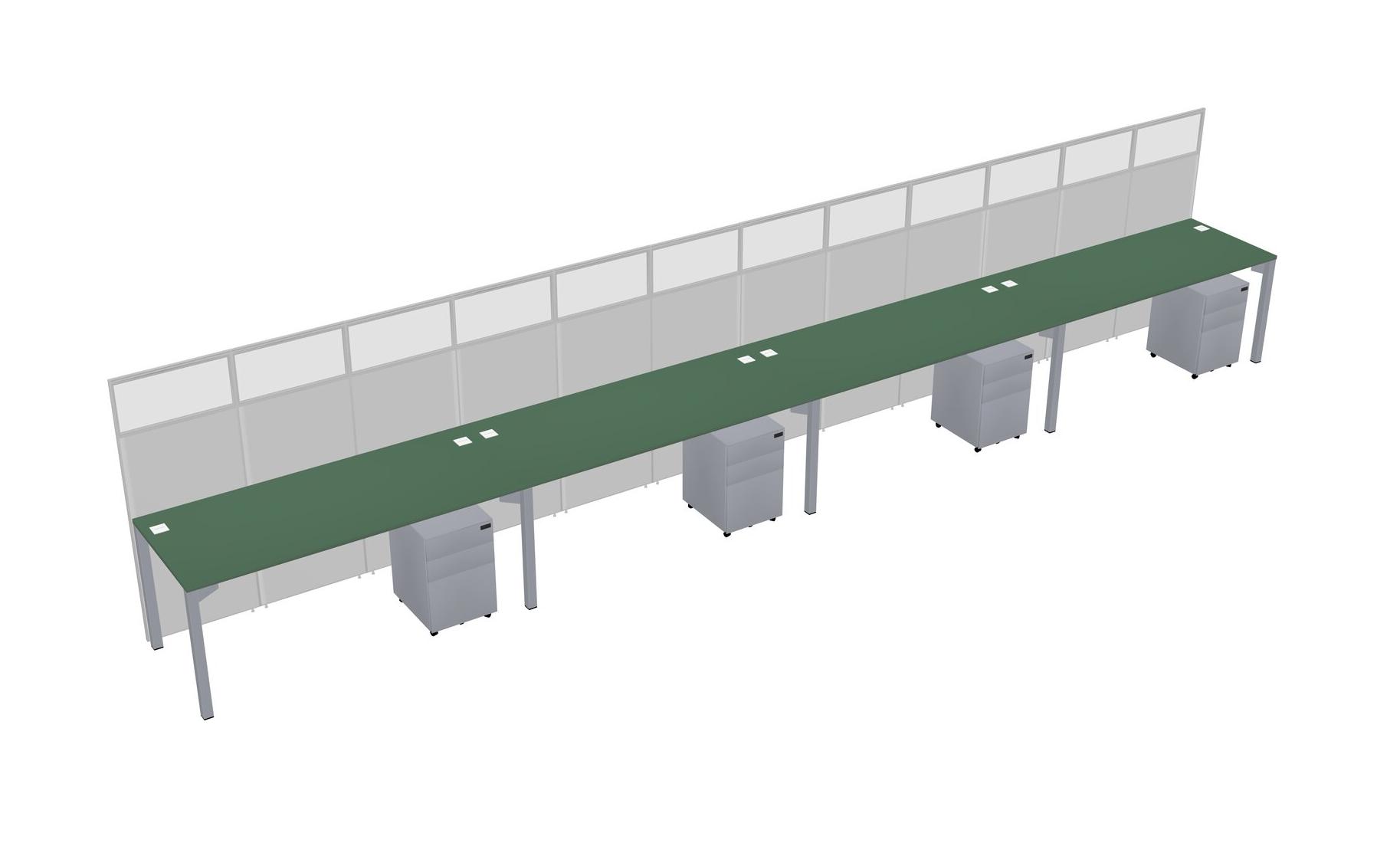 Green Shared Rectangular Office Cubicle Panel System With Mobile Drawers For 4 Persons