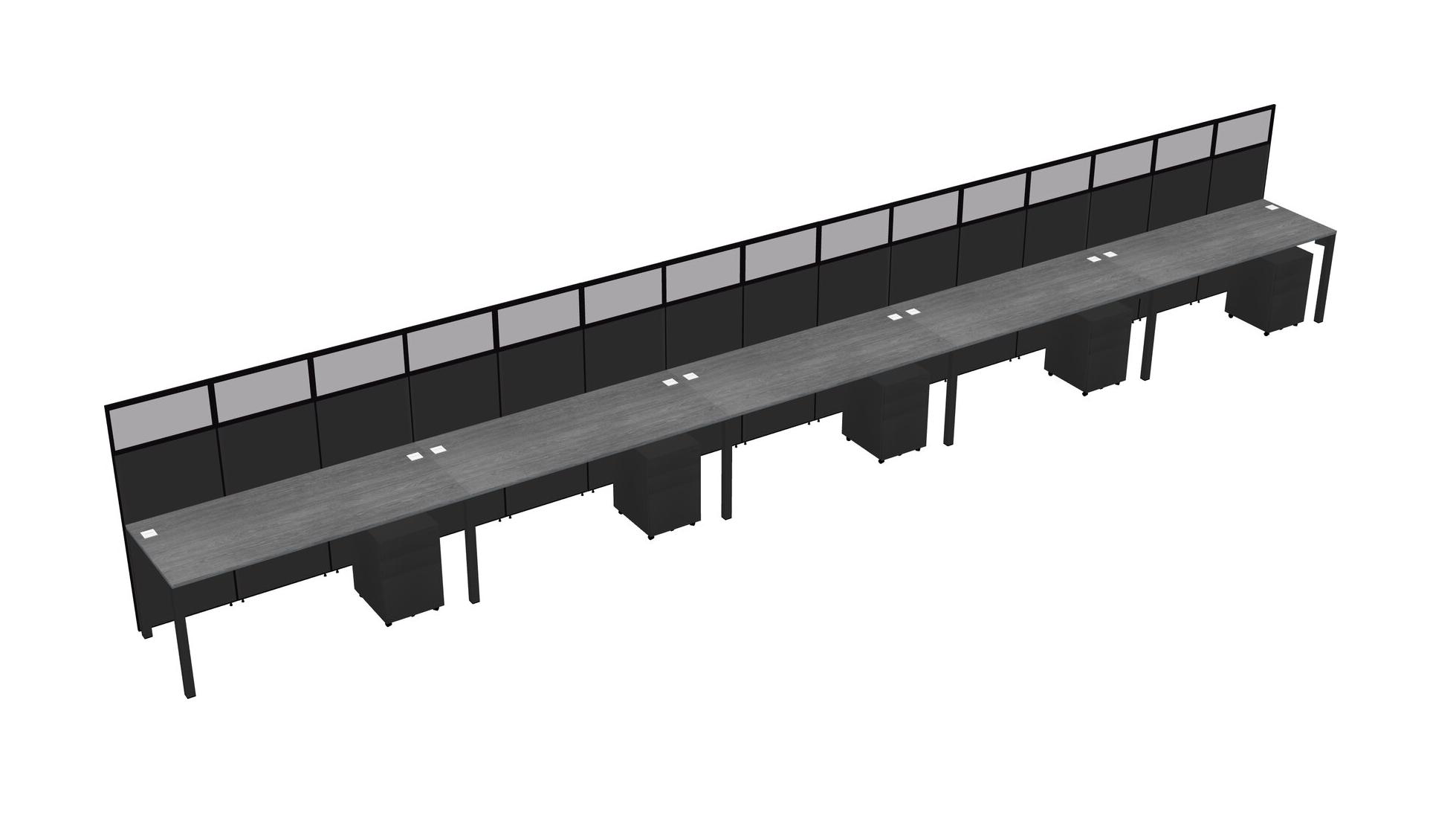 Grey Shared Rectangular Office Cubicle Panel System With Mobile Drawers For 5 Persons