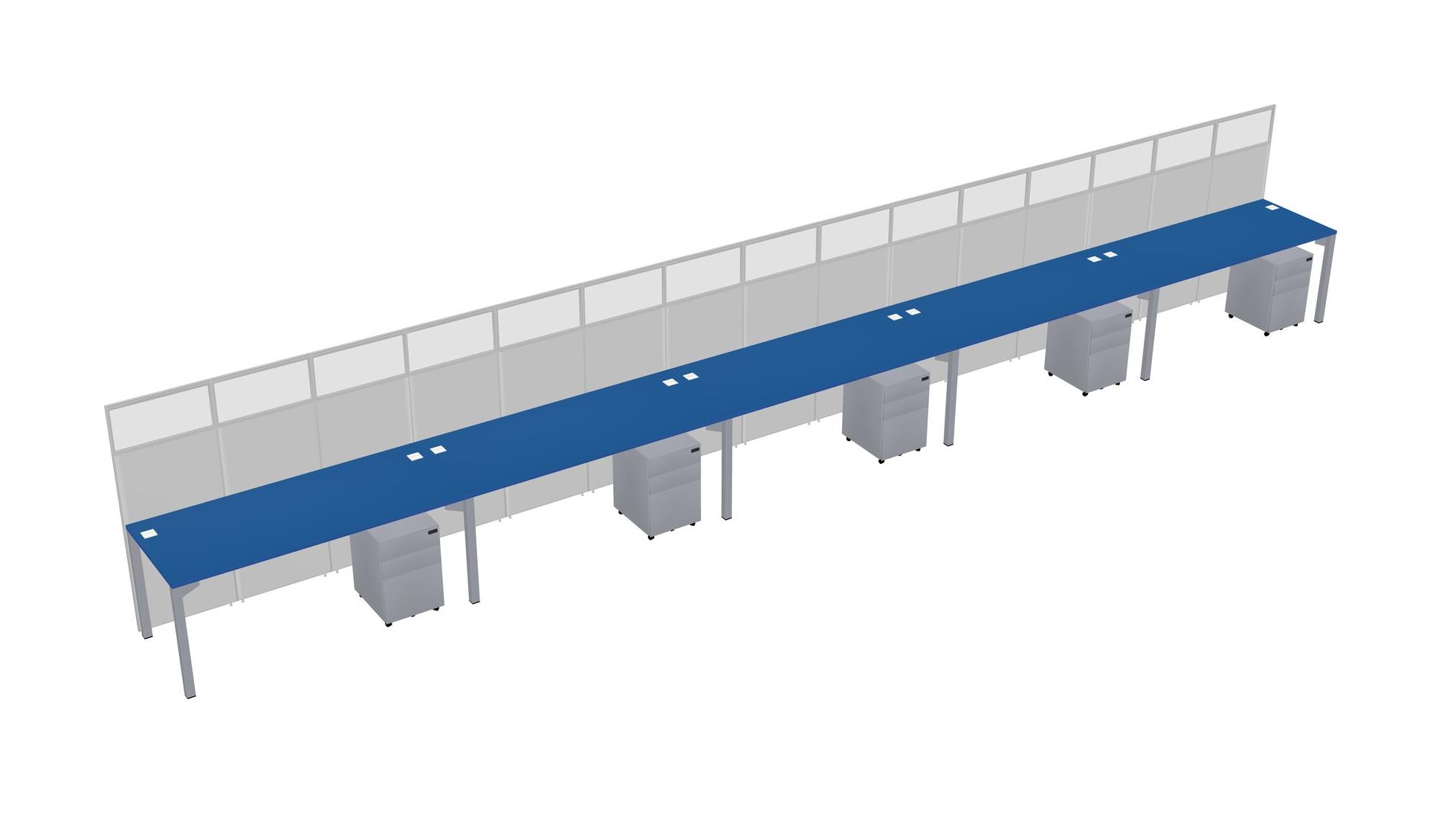 Prism Blue Shared Rectangular Office Cubicle Panel System With Mobile Drawers For 5 Persons