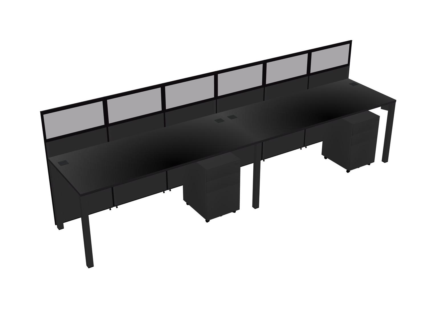 Black Shared Rectangular Office Cubicle Panel System With Mobile Drawers For 2 Persons