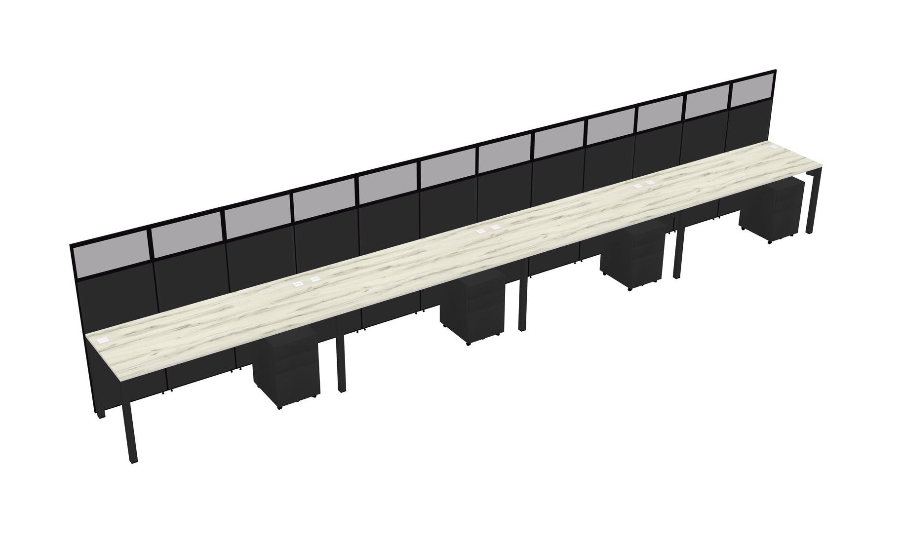 Heinne Holz Shared Rectangular Office Cubicle Panel System With Mobile Drawers For 4 Persons