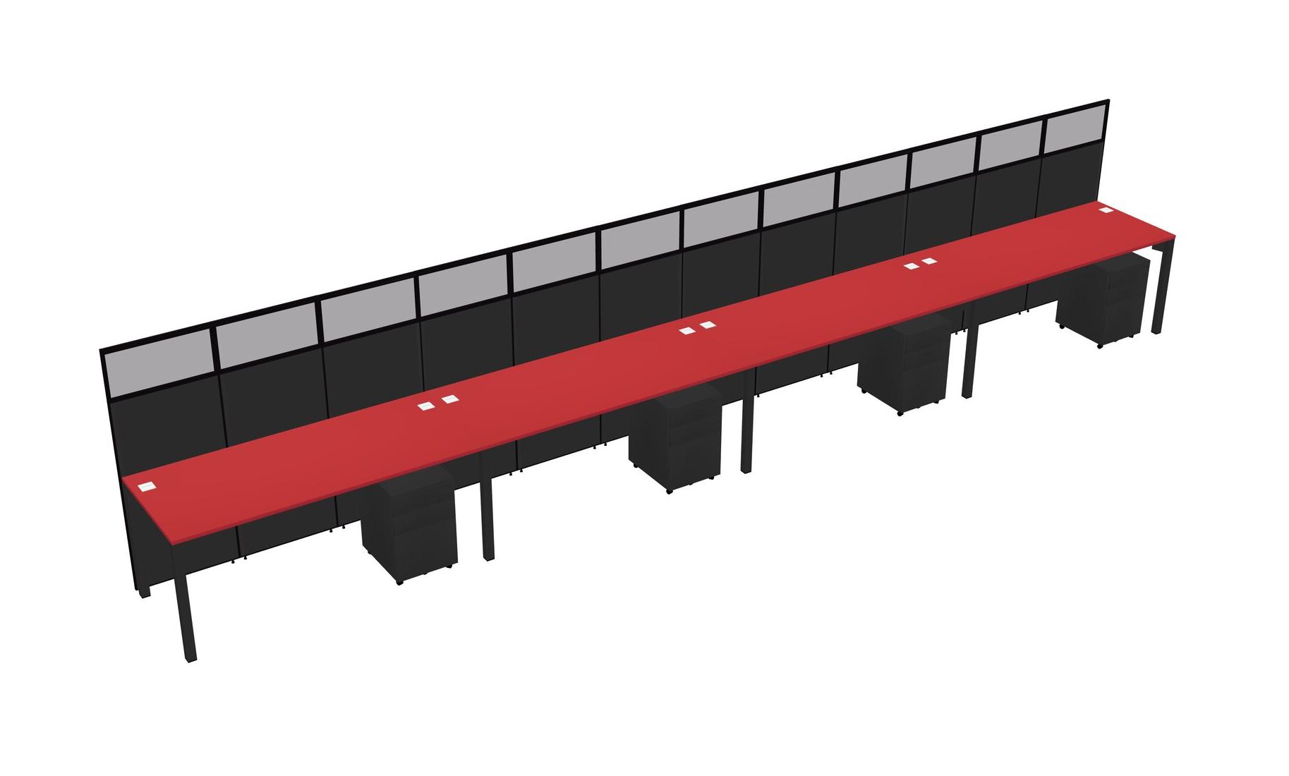 Prism Red Shared Rectangular Office Cubicle Panel System With Mobile Drawers For 4 Persons