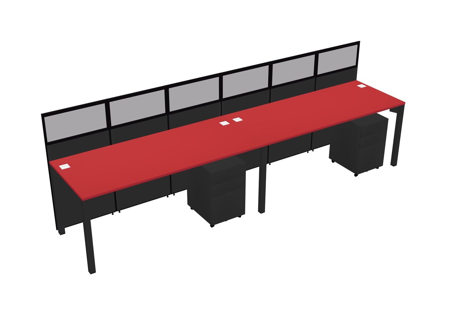 Prism Red Shared Rectangular Office Cubicle Panel System With Mobile Drawers For 2 Persons