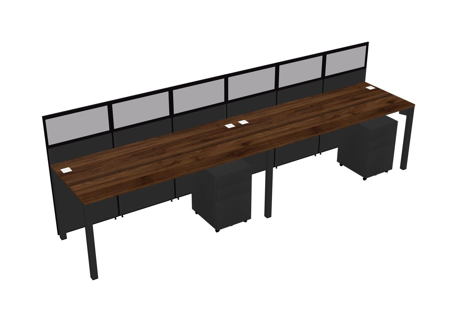 Columbia Walnut Shared Rectangular Office Cubicle Panel System With Mobile Drawers For 2 Persons