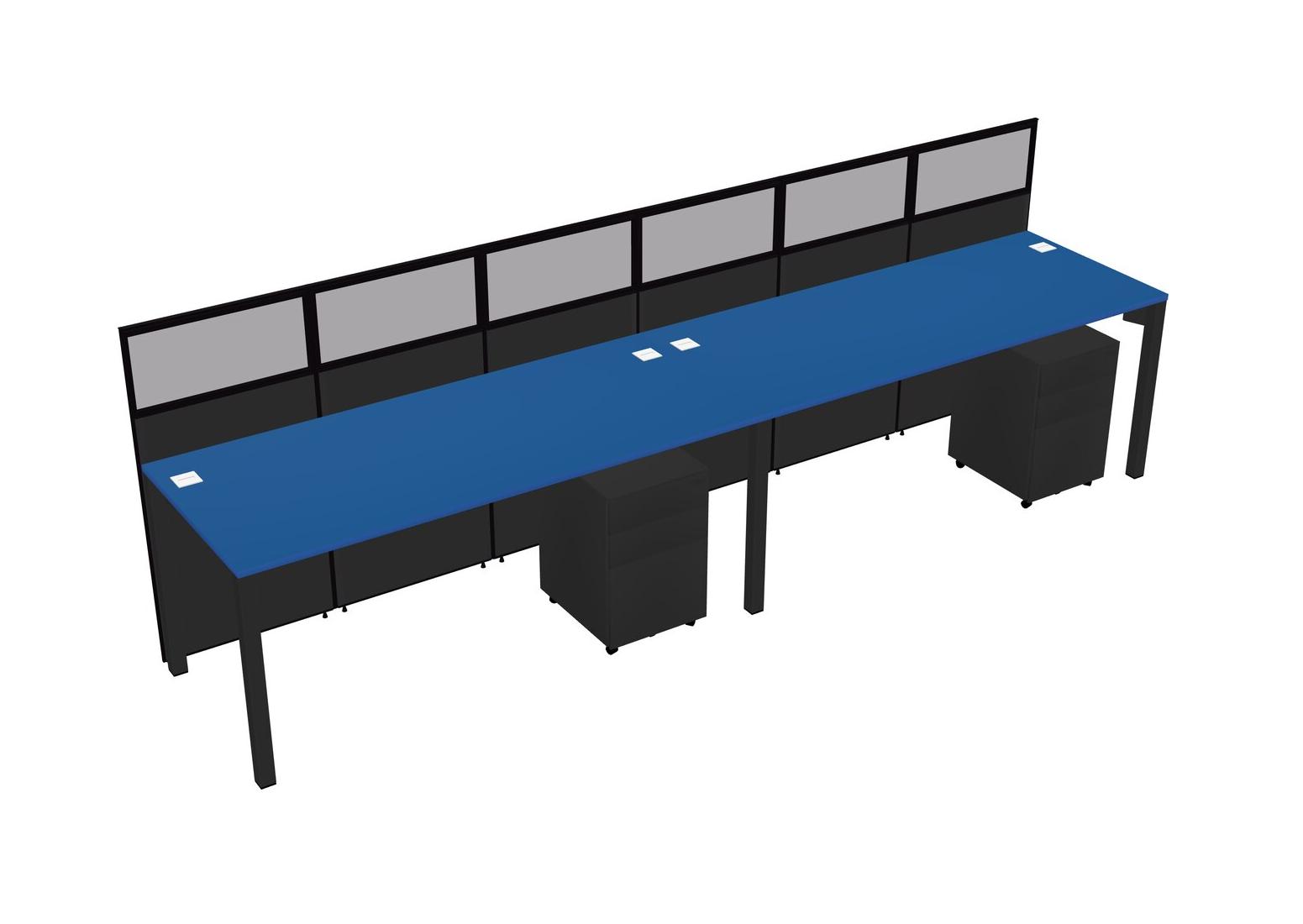 Prism Blue Shared Rectangular Office Cubicle Panel System With Mobile Drawers For 2 Persons