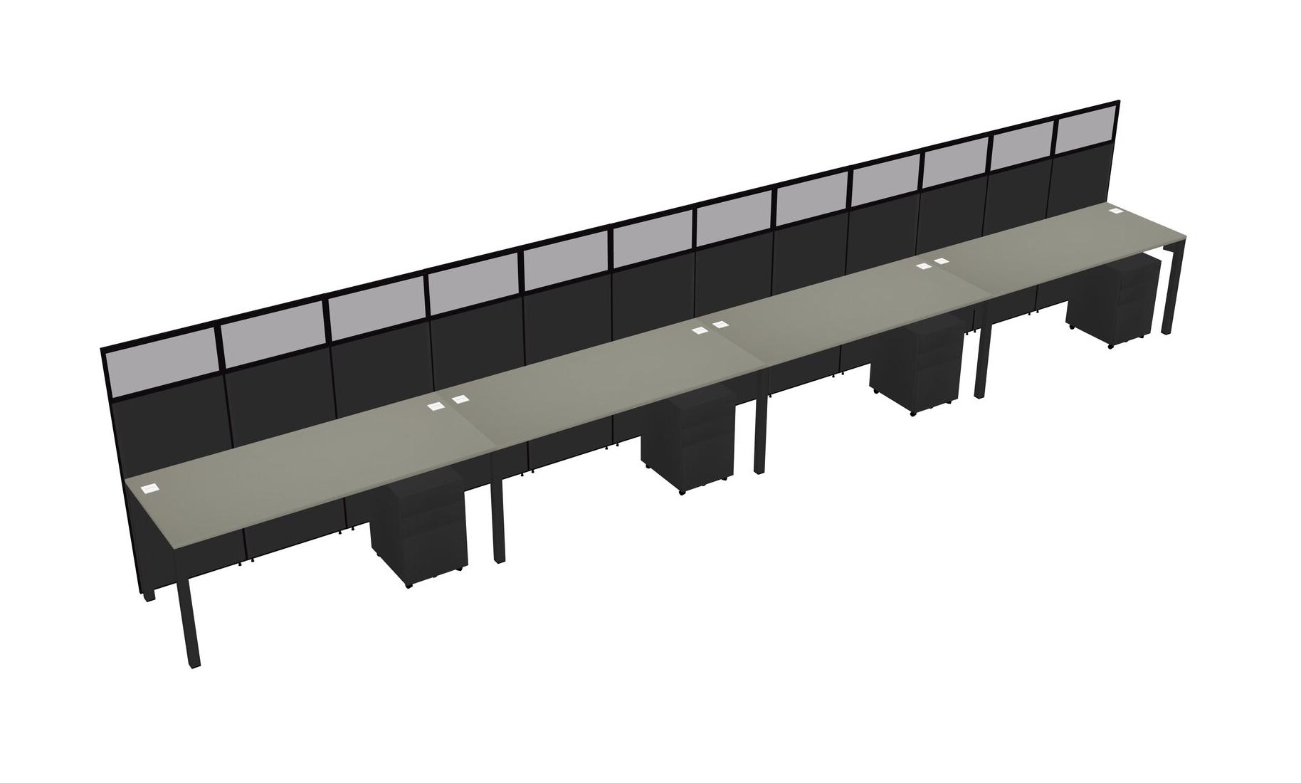 Grey Shadows Shared Rectangular Office Cubicle Panel System With Mobile Drawers For 4 Persons