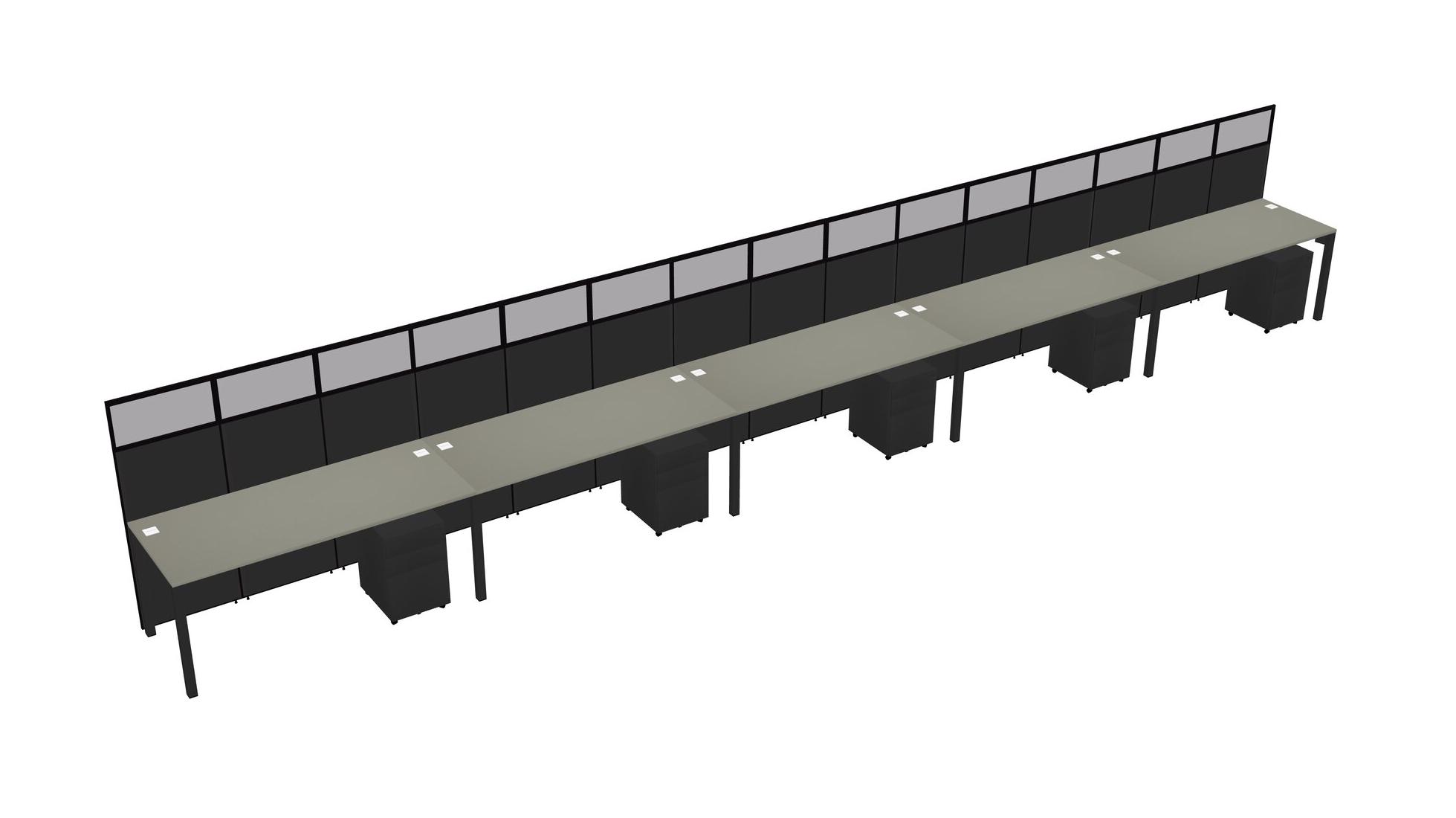 Grey Shadows Shared Rectangular Office Cubicle Panel System With Mobile Drawers For 5 Persons