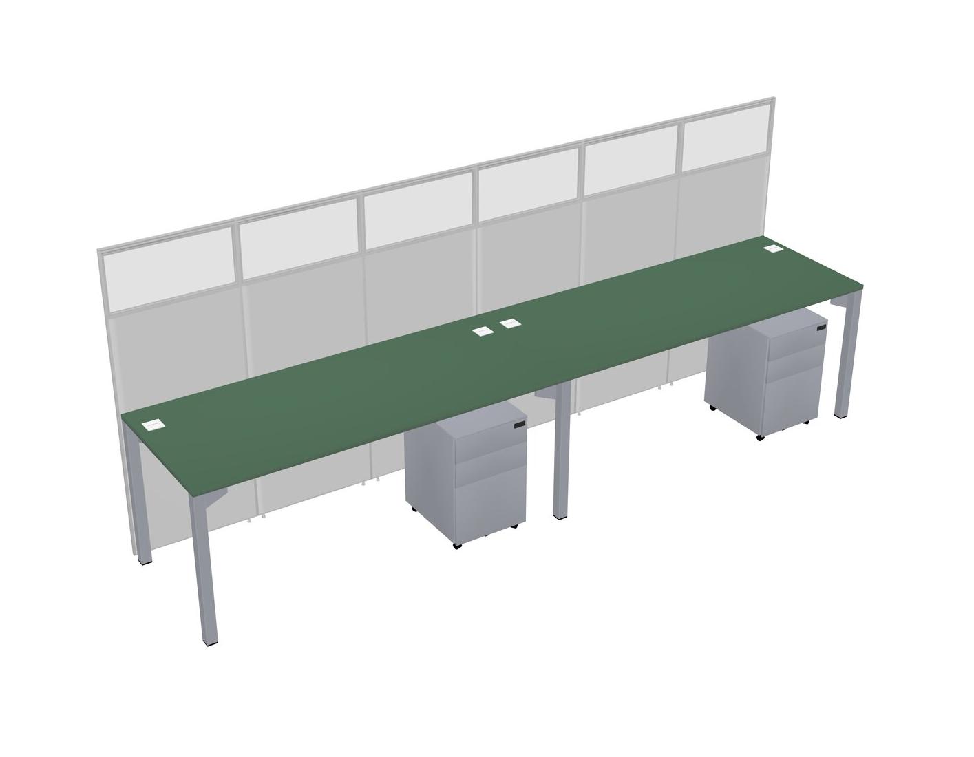 Green Shared Rectangular Office Cubicle Panel System With Mobile Drawers For 2 Persons