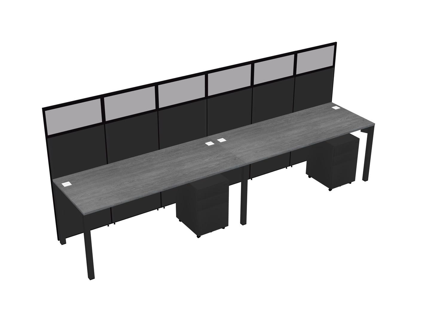 Grey Shared Rectangular Office Cubicle Panel System With Mobile Drawers For 2 Persons
