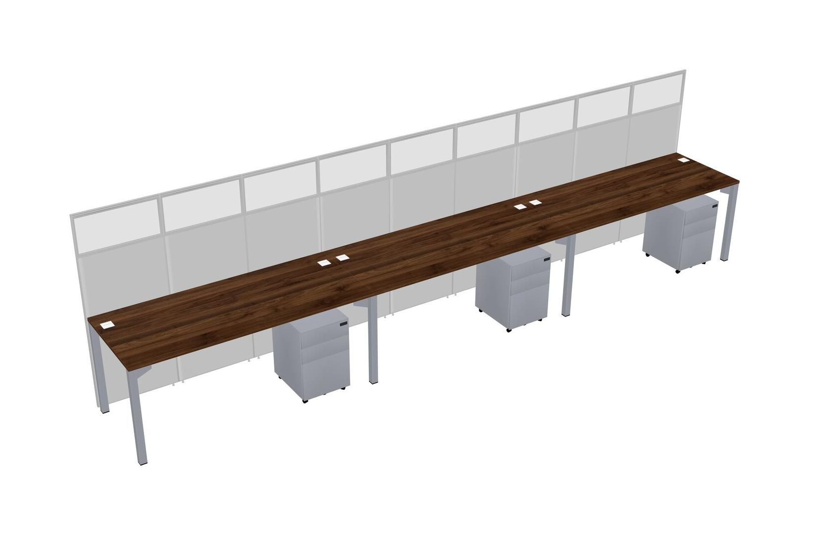 Columbia Walnut Shared Rectangular Office Cubicle Panel System With Mobile Drawers For 3 Persons