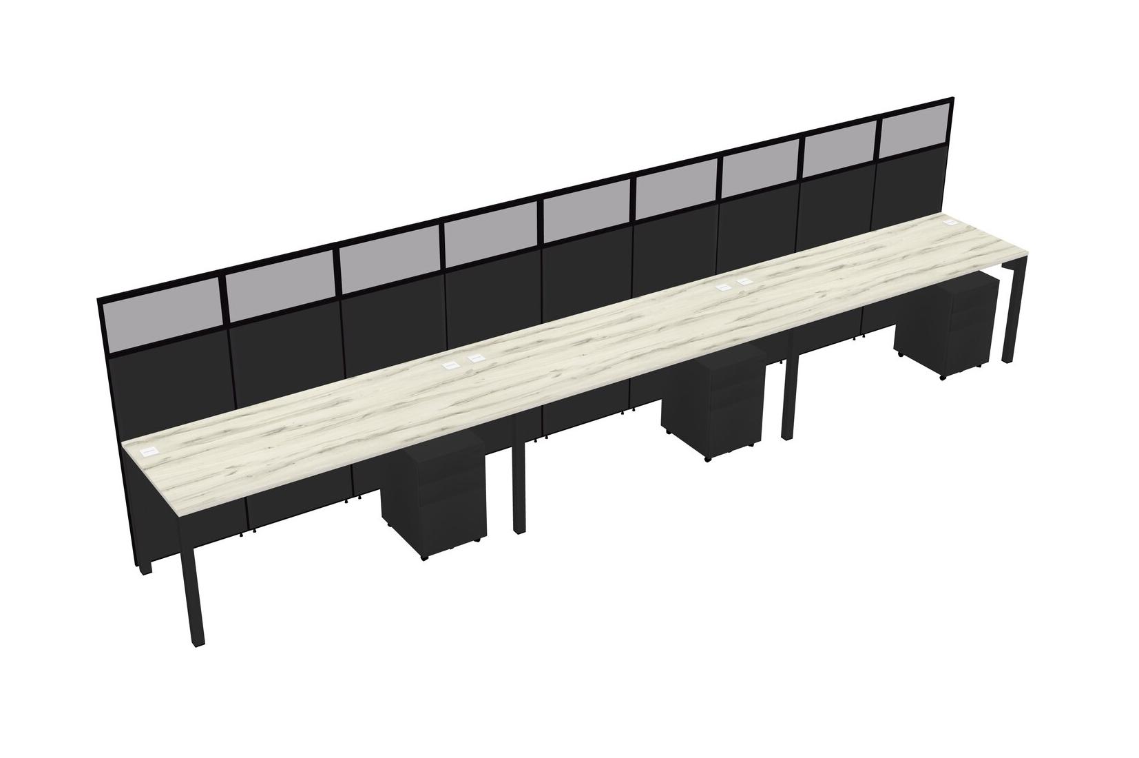 Heinne Holz Shared Rectangular Office Cubicle Panel System With Mobile Drawers For 3 Persons