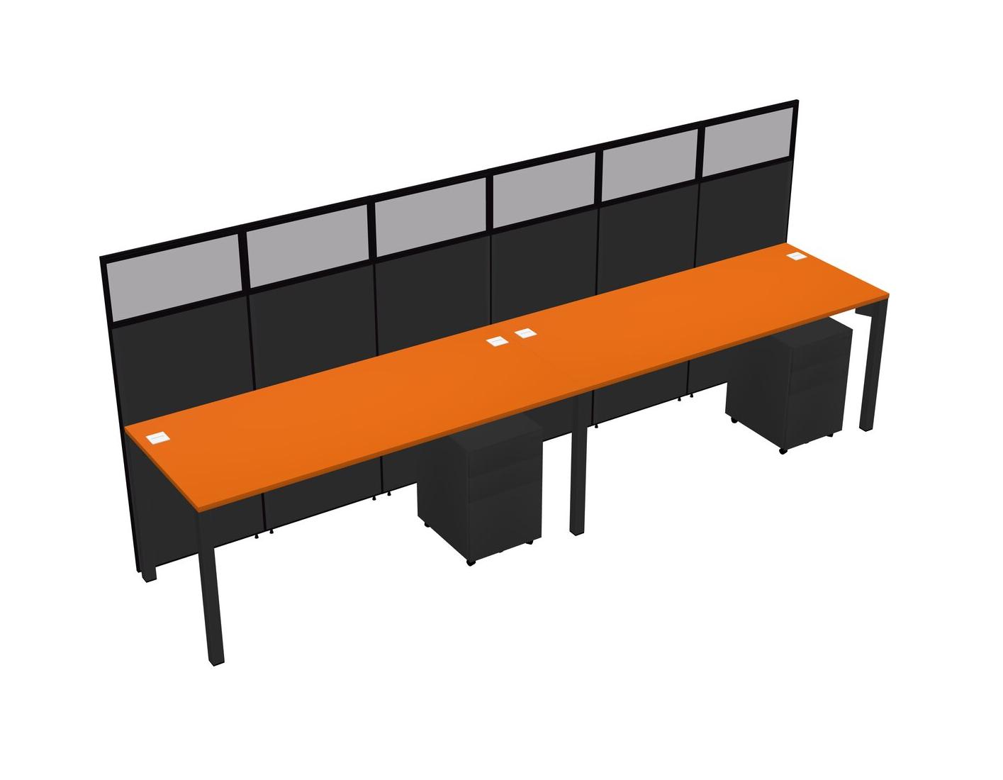 Orange Shared Rectangular Office Cubicle Panel System With Mobile Drawers For 2 Persons