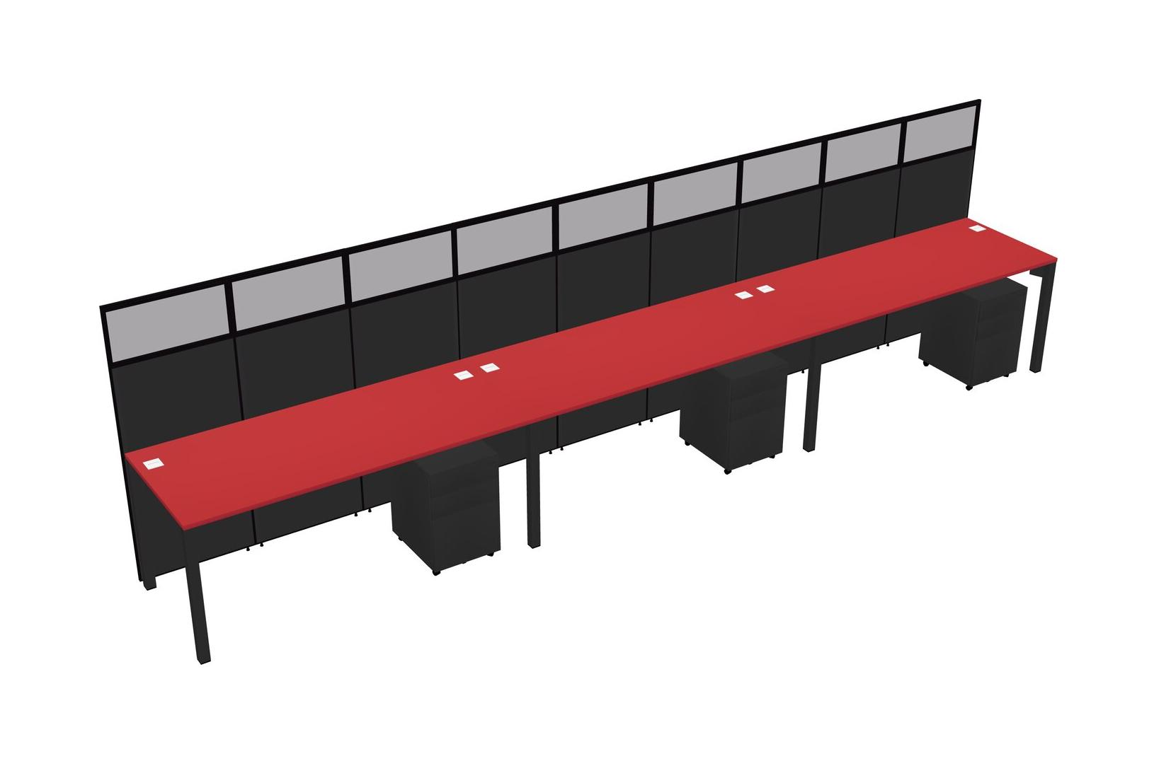 Prism Red Shared Rectangular Office Cubicle Panel System With Mobile Drawers For 3 Persons