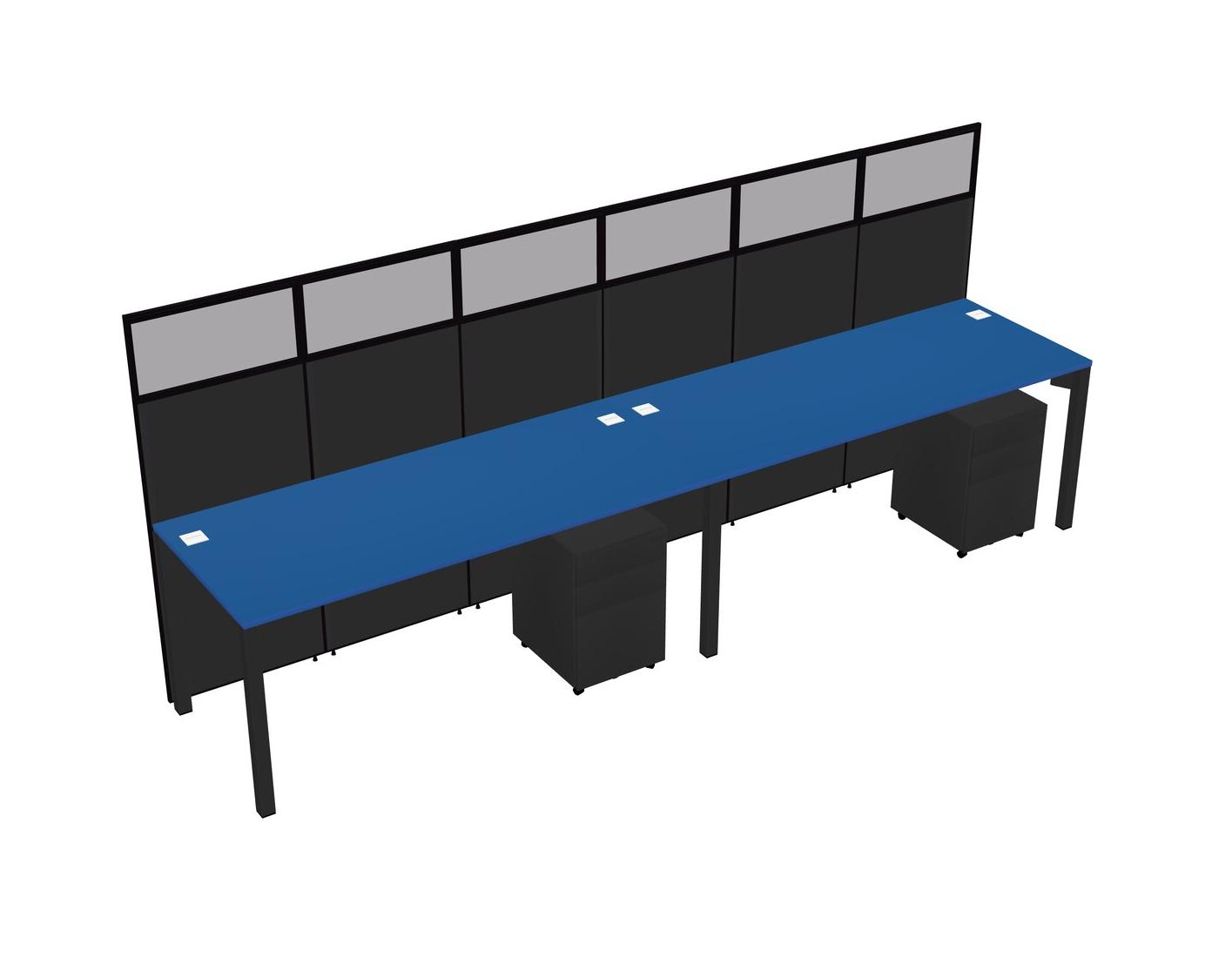 Prism Blue Shared Rectangular Office Cubicle Panel System With Mobile Drawers For 2 Persons