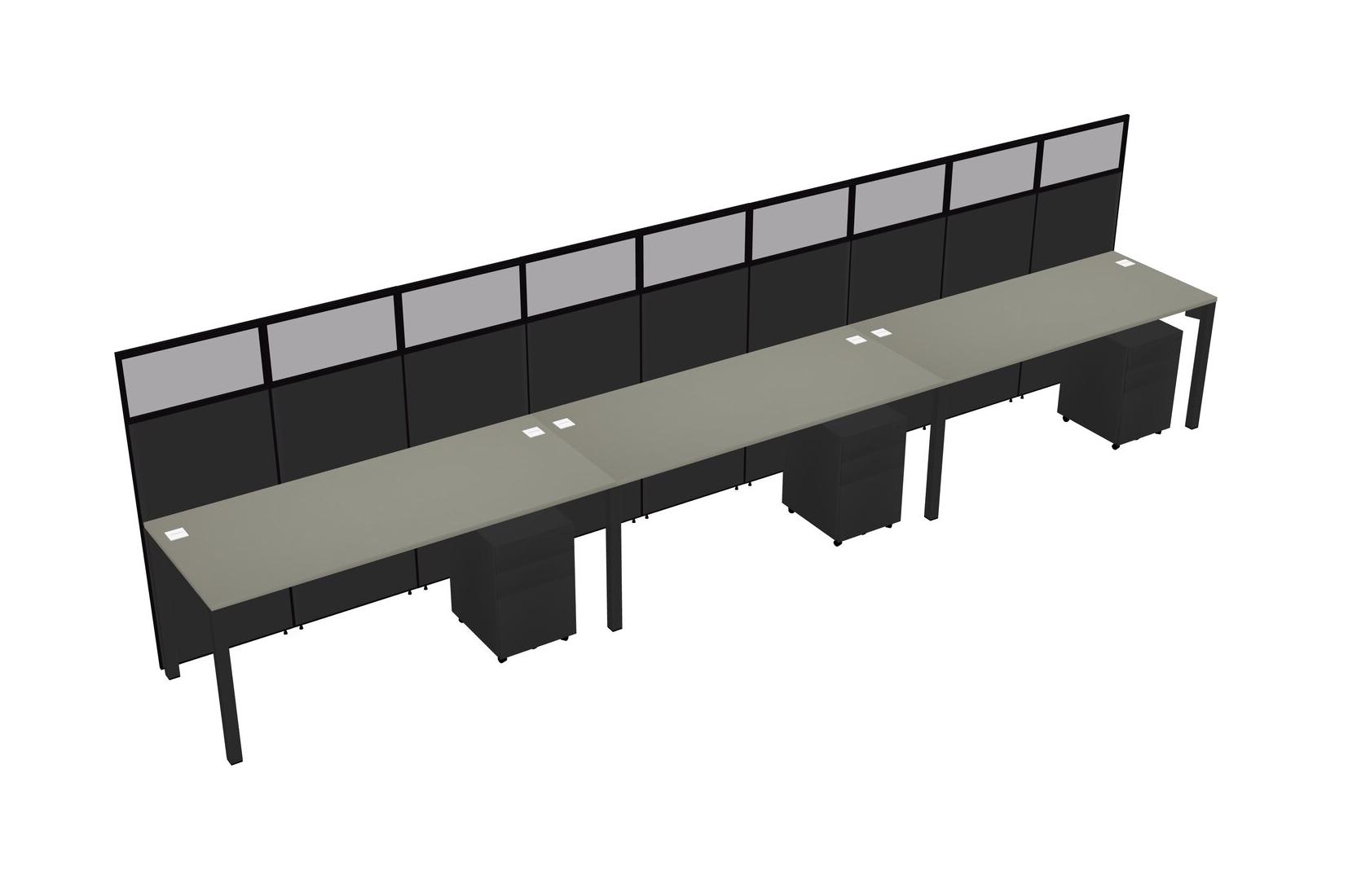 Grey Shadows Shared Rectangular Office Cubicle Panel System With Mobile Drawers For 3 Persons