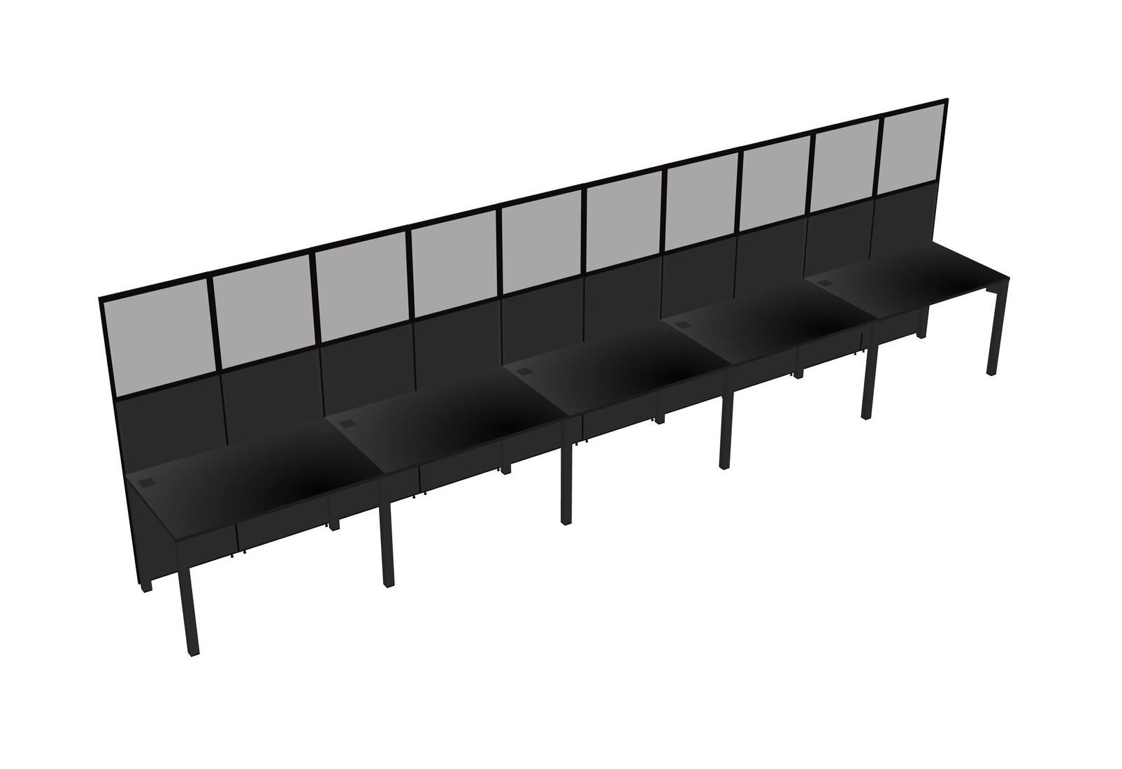 Black Shared Rectangular Office Cubicle Panel System For 5 Persons