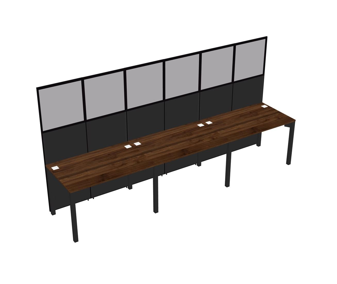 Columbia Walnut Shared Rectangular Office Cubicle Panel System For 3 Persons