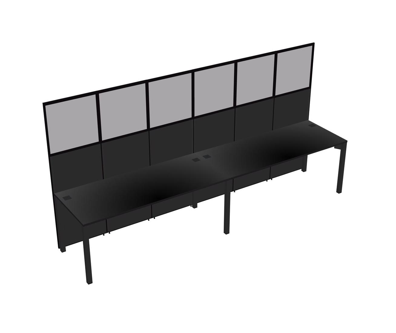 Black Shared Rectangular Office Cubicle Panel System For 2 Persons