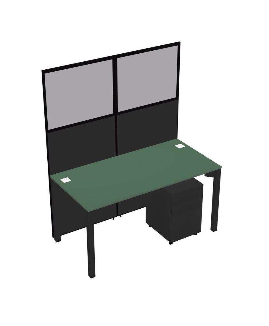 Green Shared Rectangular Office Cubicle Panel System With Mobile Drawers For 1 Persons