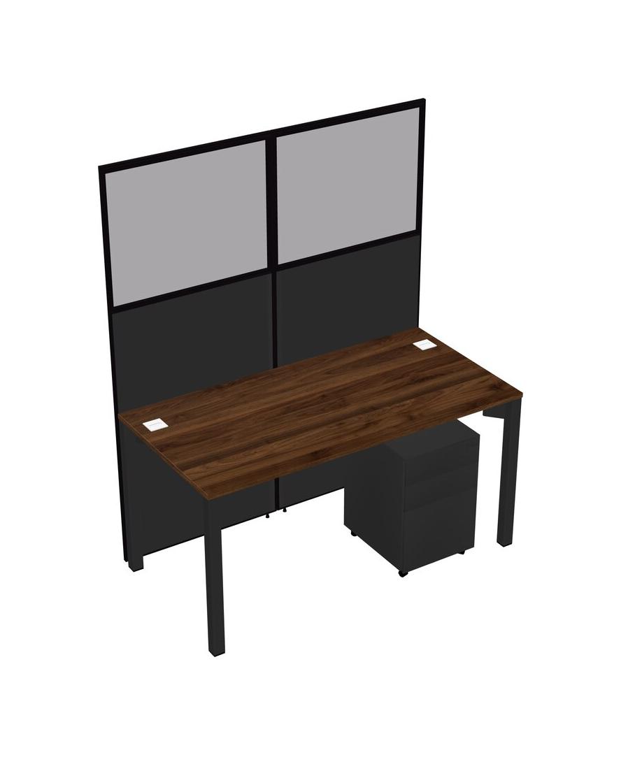 Columbia Walnut Shared Rectangular Office Cubicle Panel System With Mobile Drawers For 1 Persons