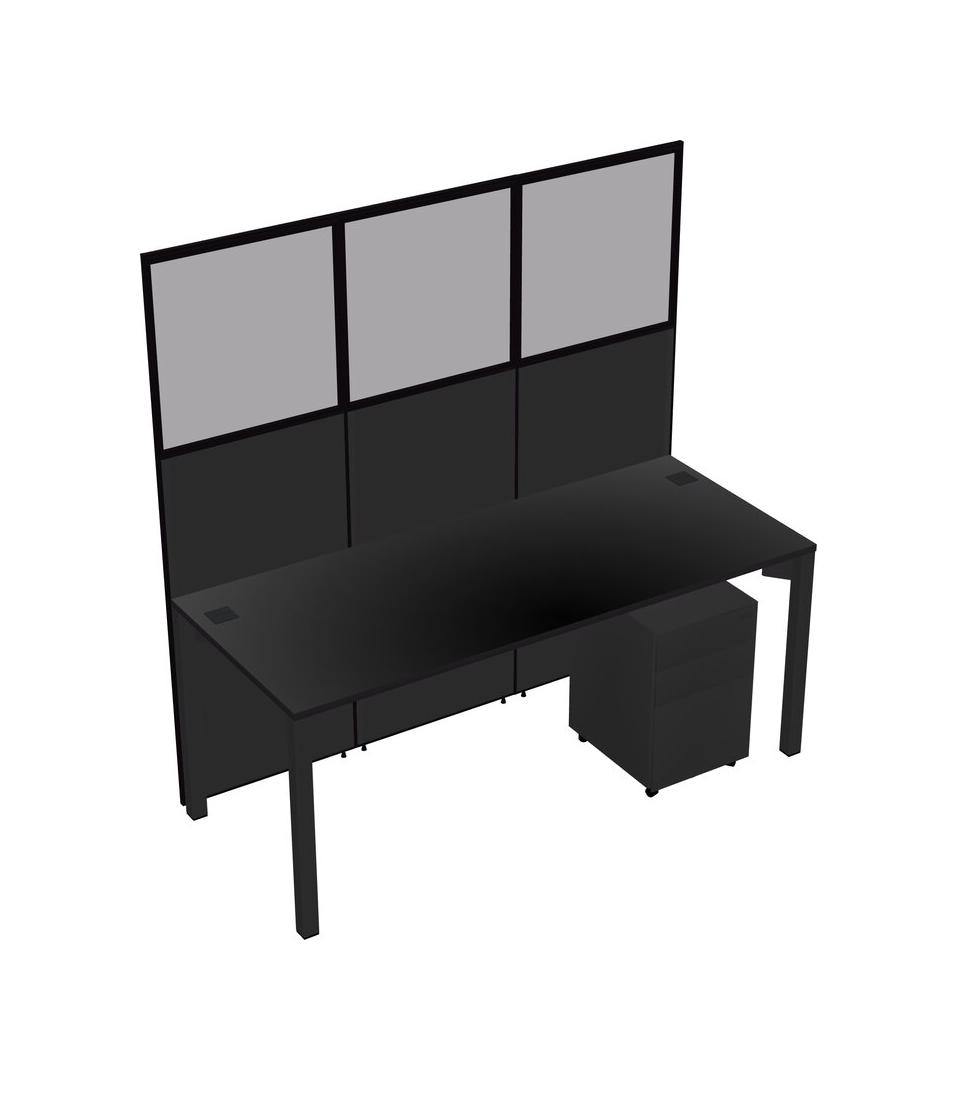Black Shared Rectangular Office Cubicle Panel System With Mobile Drawers For 1 Persons