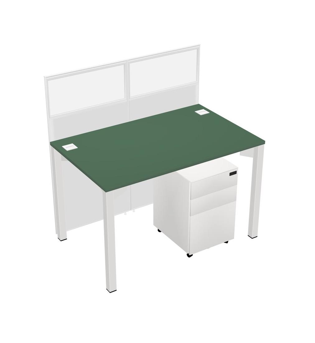 Green Shared Rectangular Office Cubicle Panel System With Mobile Drawers For 1 Persons