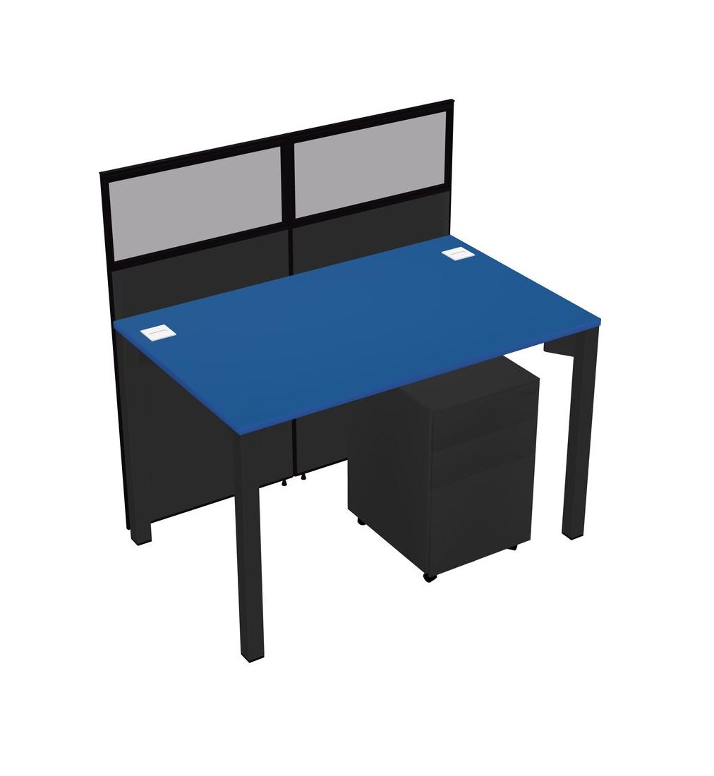 Prism Blue Shared Rectangular Office Cubicle Panel System With Mobile Drawers For 1 Persons