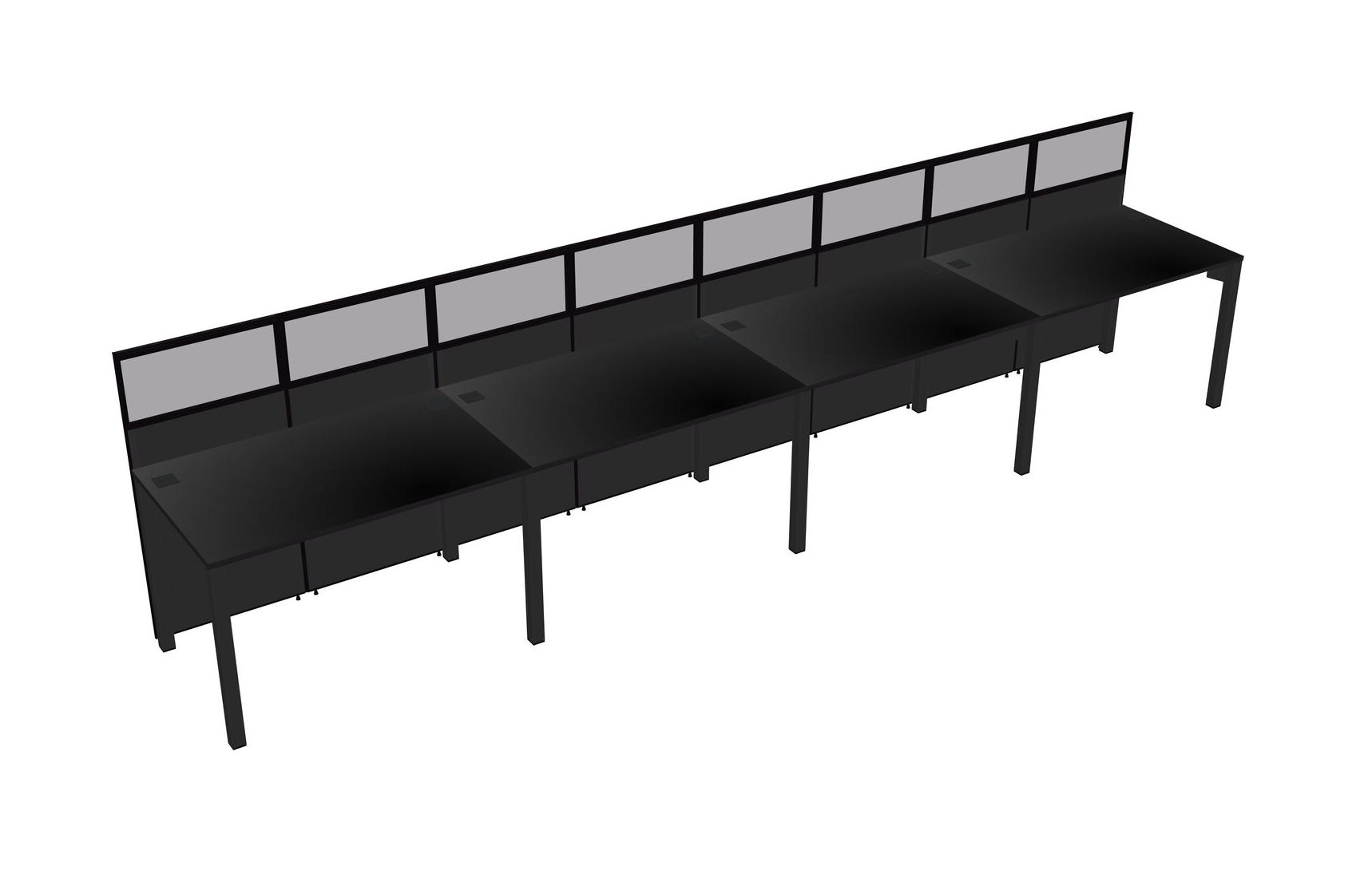 Black Shared Rectangular Office Cubicle Panel System For 4 Persons