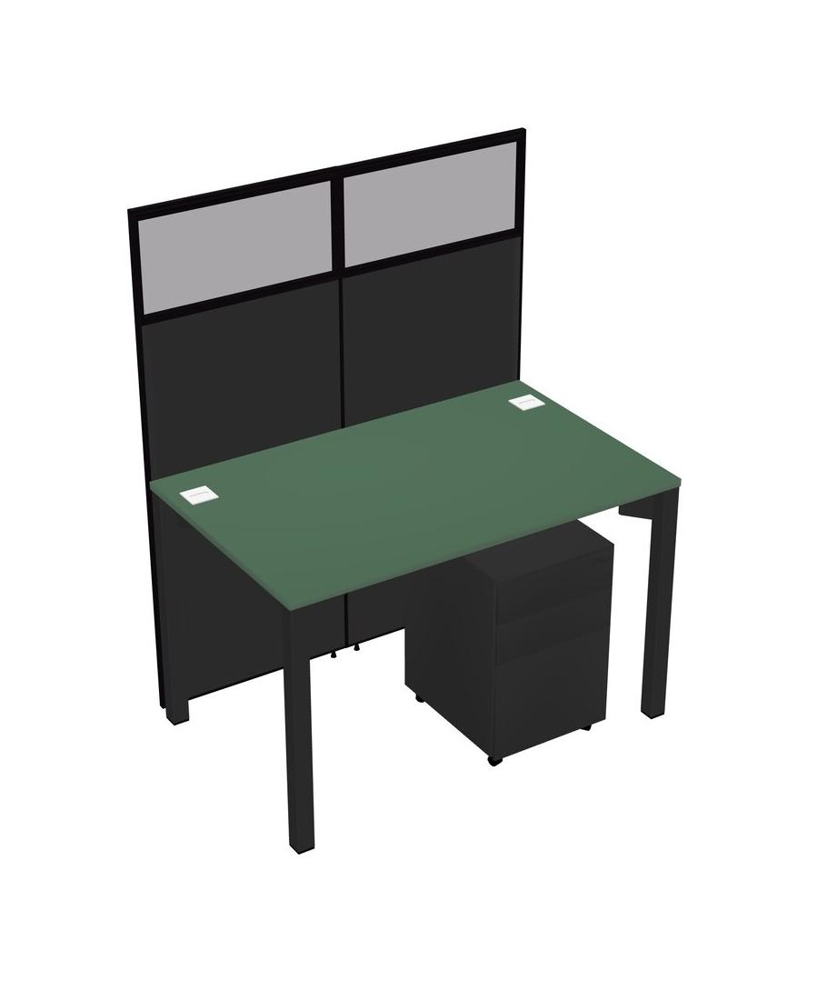 Green Shared Rectangular Office Cubicle Panel System With Mobile Drawers For 1 Persons