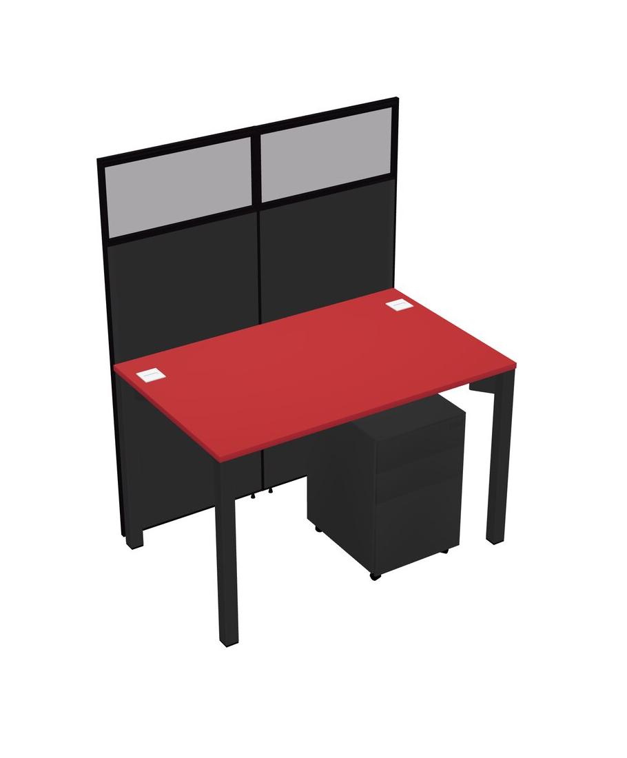Prism Red Shared Rectangular Office Cubicle Panel System With Mobile Drawers For 1 Persons