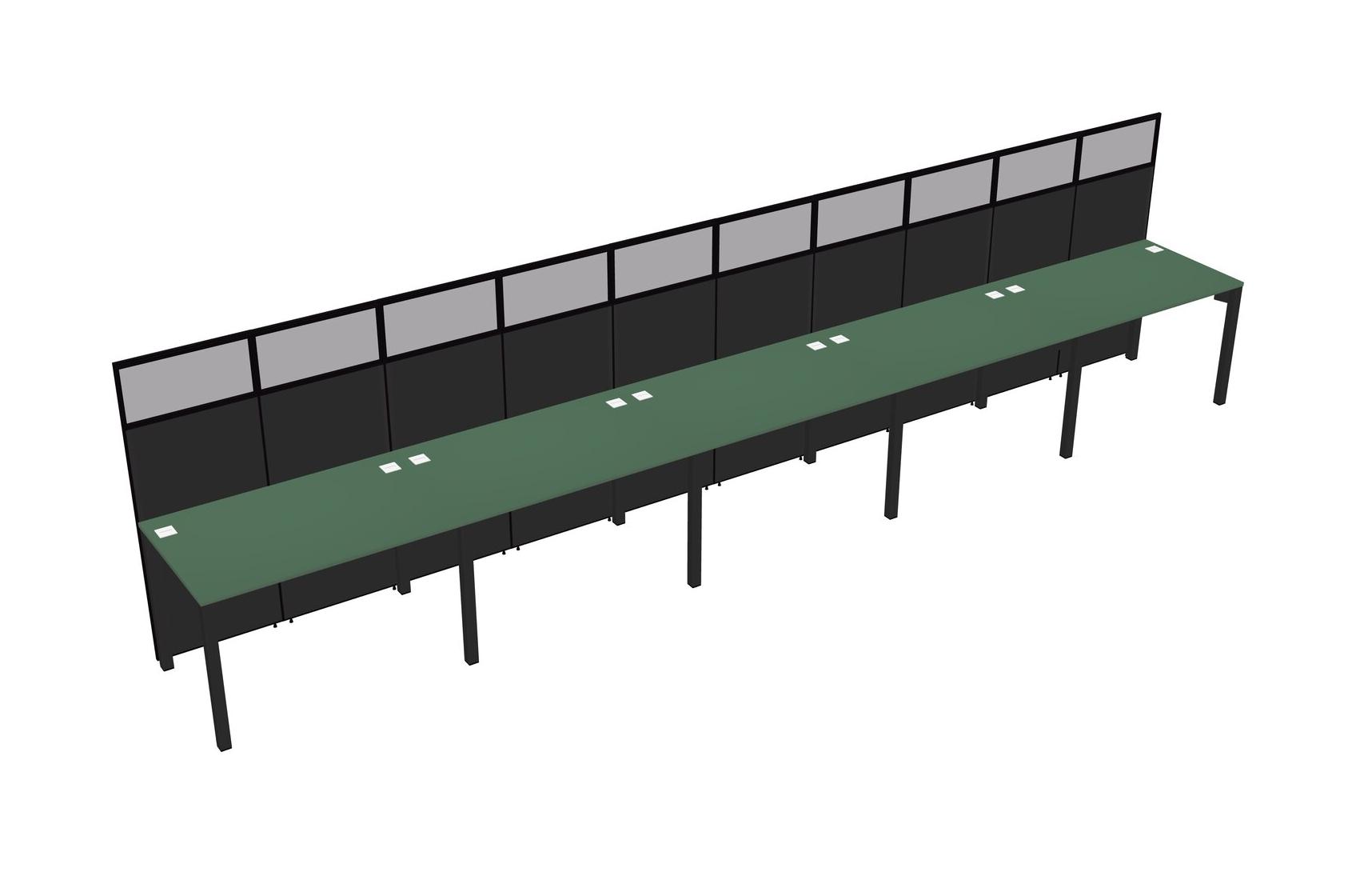 Green Shared Rectangular Office Cubicle Panel System For 5 Persons